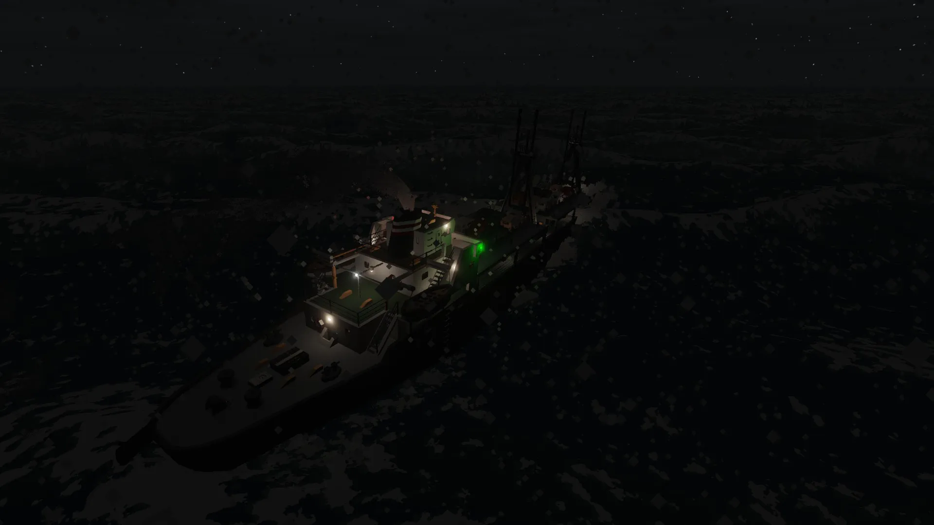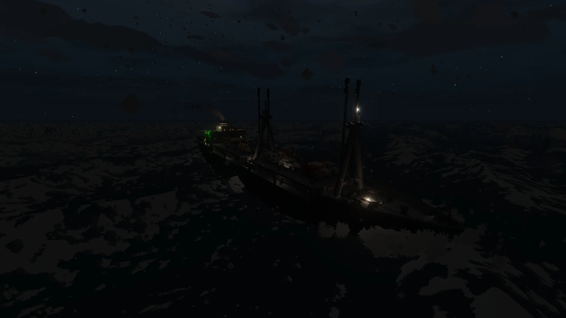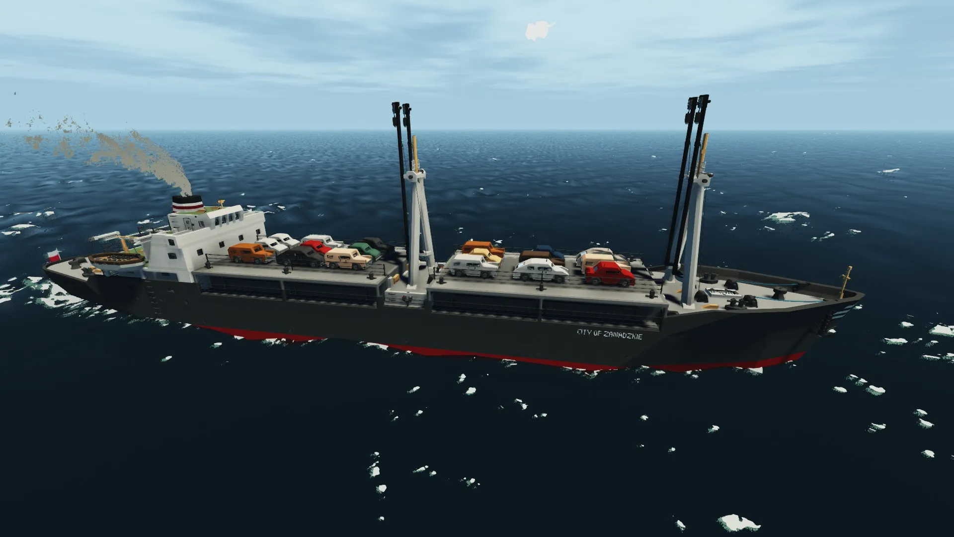 A fair hauler built in the 60s by SILES, she was also capable of transporting cars on the cargo hatches. Such a ship proved to be useful for hauling goods near the coast, but poor maintenance caused her to sink during a winter storm.