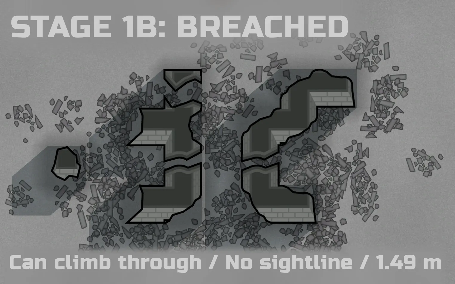 Destroying walls is an unstable process. Sometimes you hit a pillar, sometimes you knock out a weak panel. When a normal wall is destroyed, it will downgrade into either stage 1A or stage 1B. The, when those stages are destroyed, it will downgrade into stage 2. There is also a chance that wall will immediately double-downgrade into stage 2.