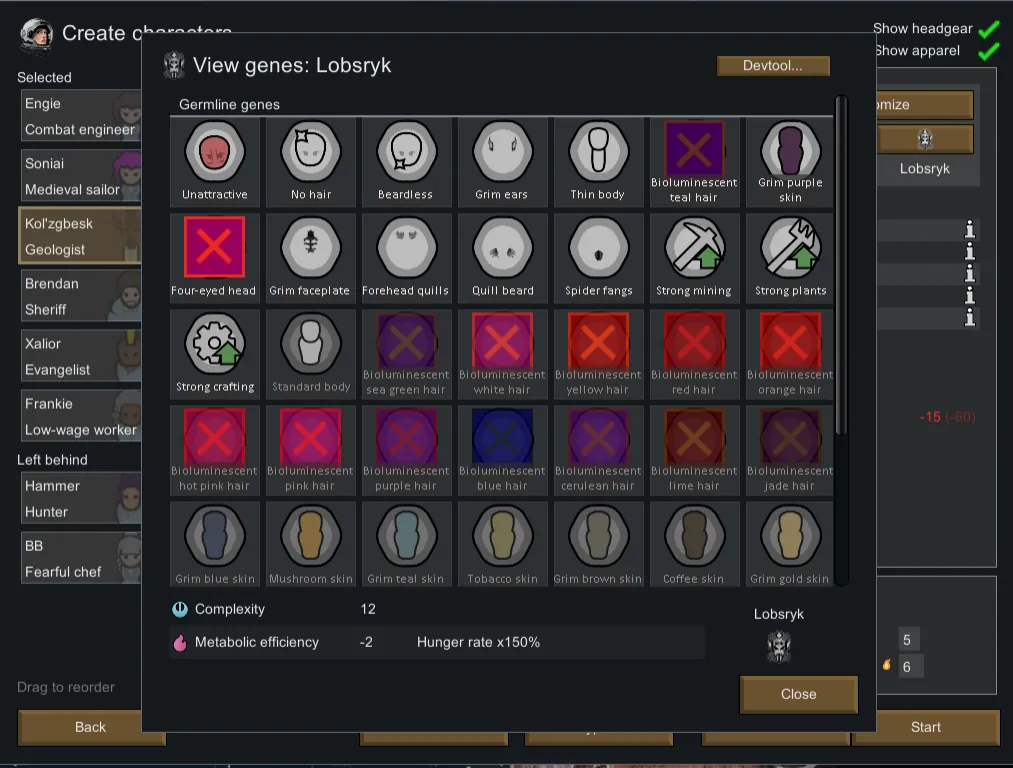 -The four-eyed head now has a graphic in the gene editor. What the screenshot shows is a bug caused by a typo in the code that got fixed last-minute.