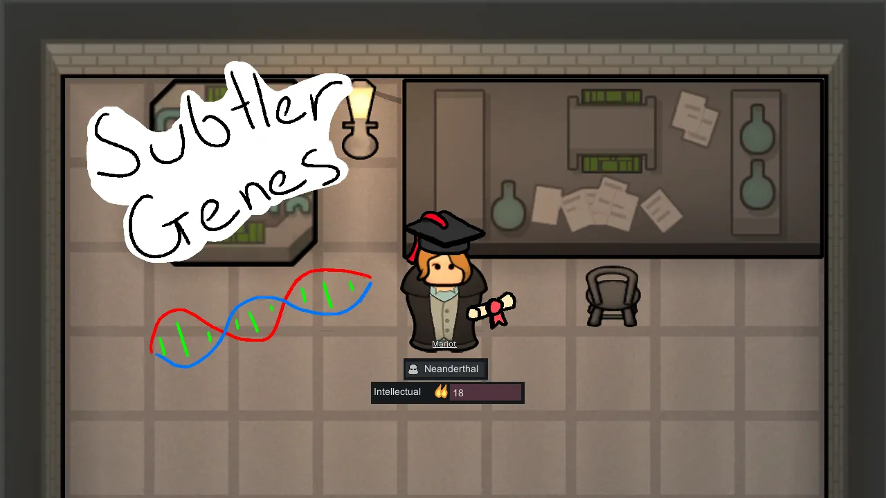 Vanilla genes pigeonhole pawns of certain xenotypes into particular roles. Personally, I find this fine from a gameplay standpoint, but I think it really hurts RimWorld from a narrative standpoint, making pawns less narratively dynamic. Every gene that too drastically damages a pawn's ability to perform in a certain area has been changed to simply hinder it. Some of these genes have also had their positive equivalent slightly tempered. This absolutely changes the balance of the game; beyond the obvious, the adjustments to metabolism impact the hunger rate of many xenotypes.
