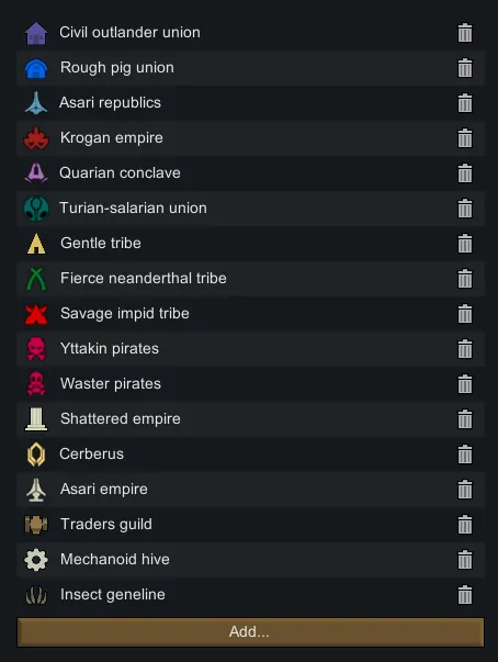 Vanilla oriented faction mod. Factions: