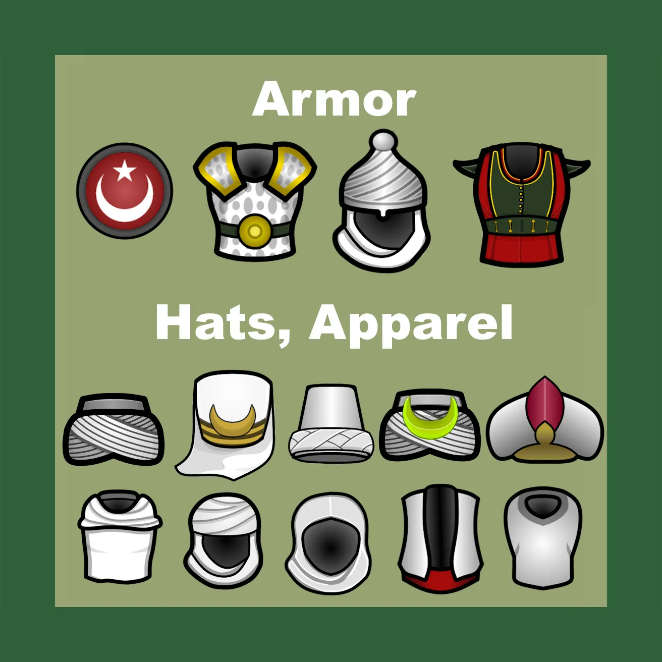 - Cultural clothing options including Thawbs, desert wrappings and urban vests. Also, turbans, hats and face wrappings of various types.