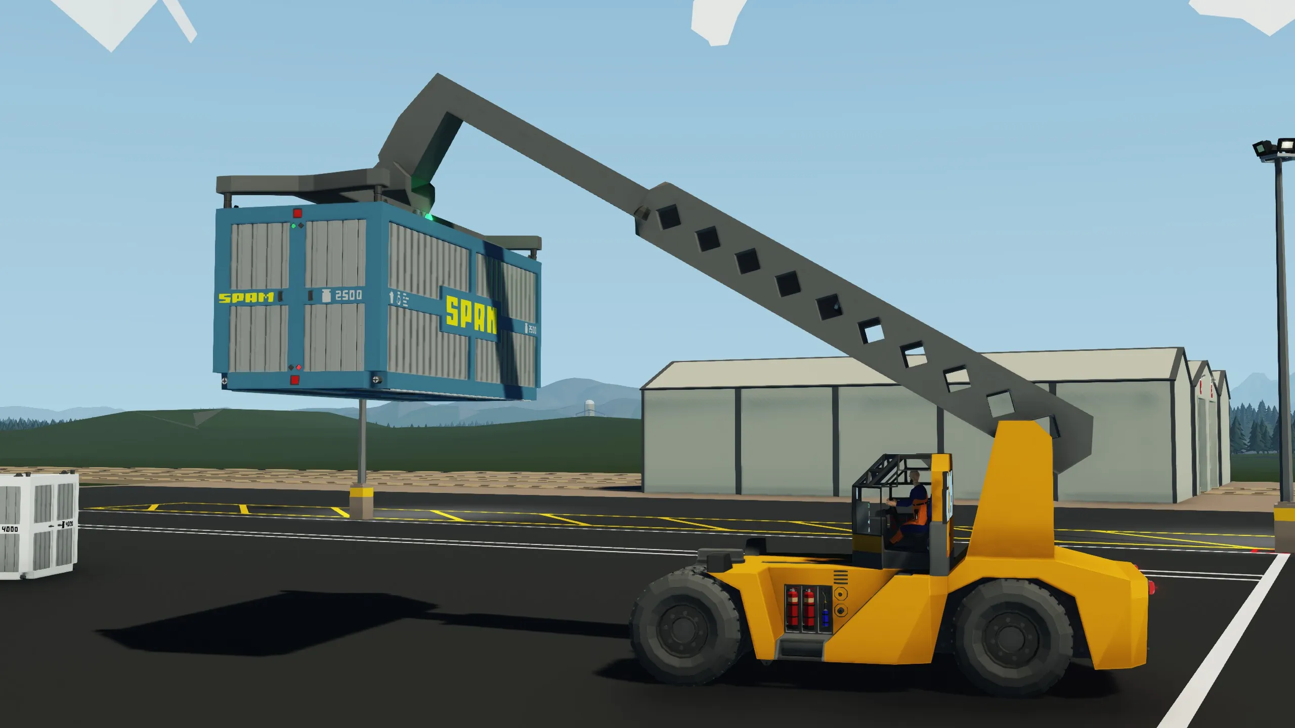 Spawnable in trainyard. Can lift 1.4k mass containers on full arm length.