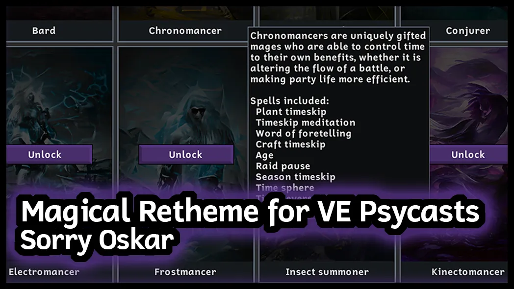 - A rewrite of [b]Vanilla Psycasts Expanded's[/b] psycasting trees to make them feel more fantasy and magic based.