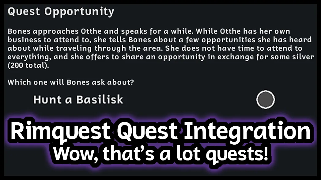 [url=https://steamcommunity.com/sharedfiles/filedetails/?id=1354114366]RimQuest[/url]: Quest integration for many different mods