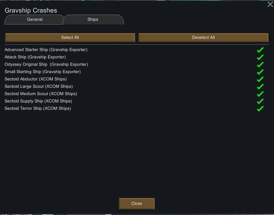 [*] Don't want to see your favourite design blown up and ruined ? Filter ships out of being eligible to crash in the mod settings menu !