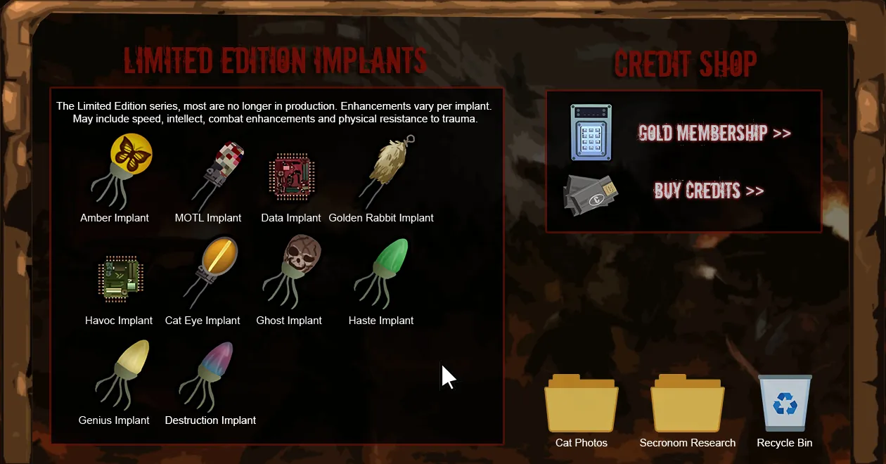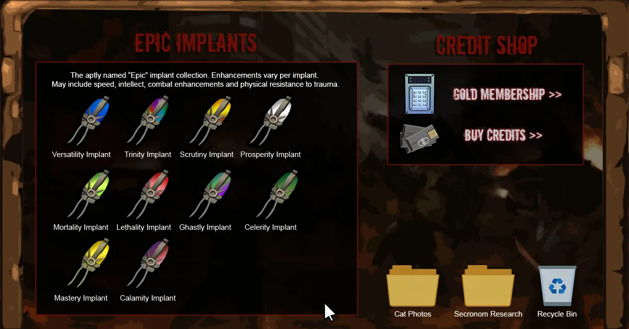 - Implants from the ancient world. Epic, Limited Edition and X-Series circulating in black markets near you!