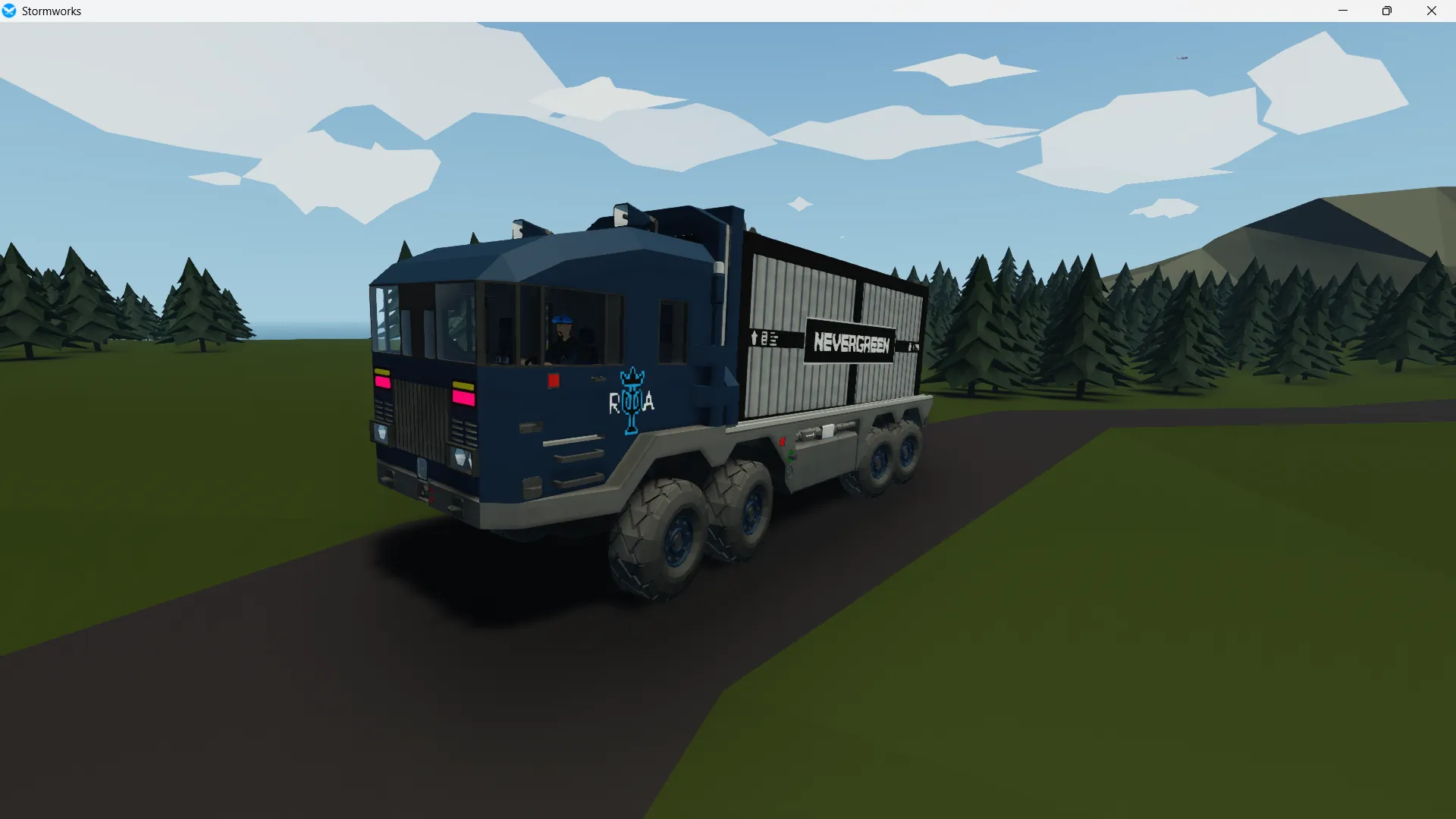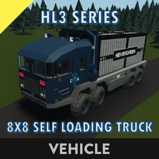 The HL3 series of 8x8 truck is the primary heavy duty cargo truck of the Royal Alantian Shipping Company. its rugged design and excellent fuel efficiency make it the perfect vehicle for long haul heavy transport duties over rough terrain. this variant in the HL3 series is outfitted to carry ISO containers and has a self loading rig. it also comes with a sleeping cab as standard