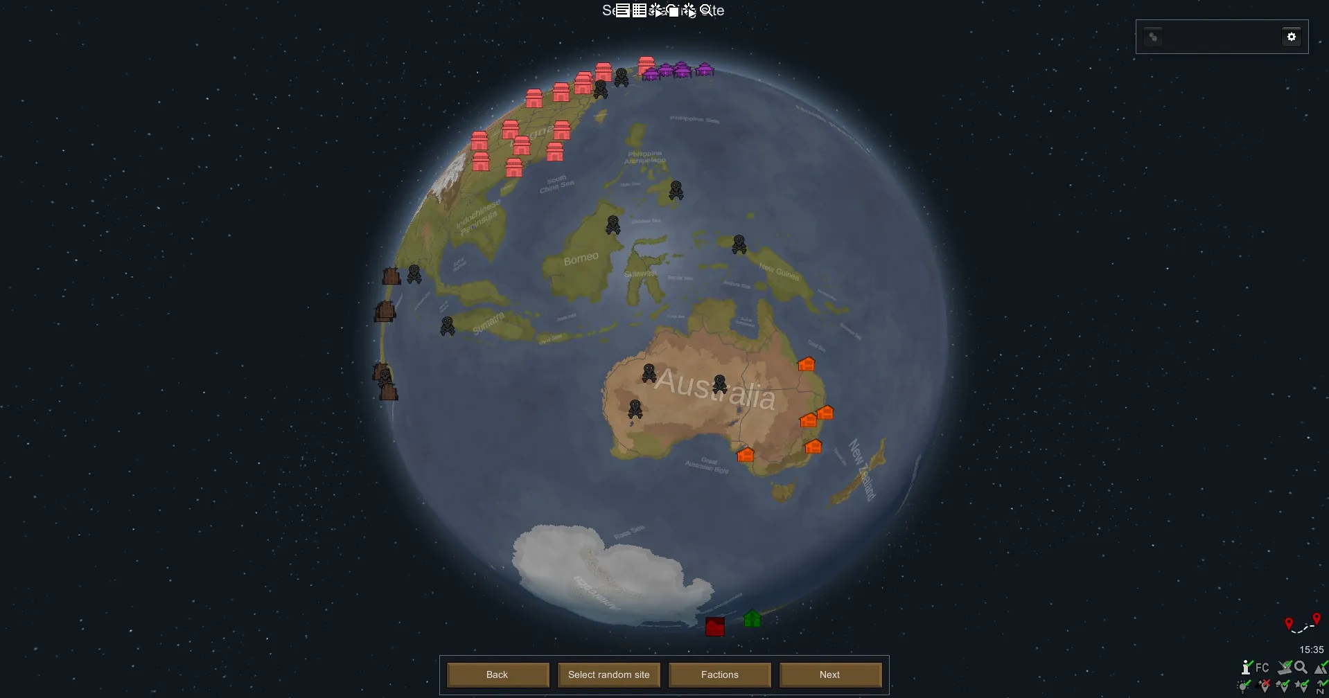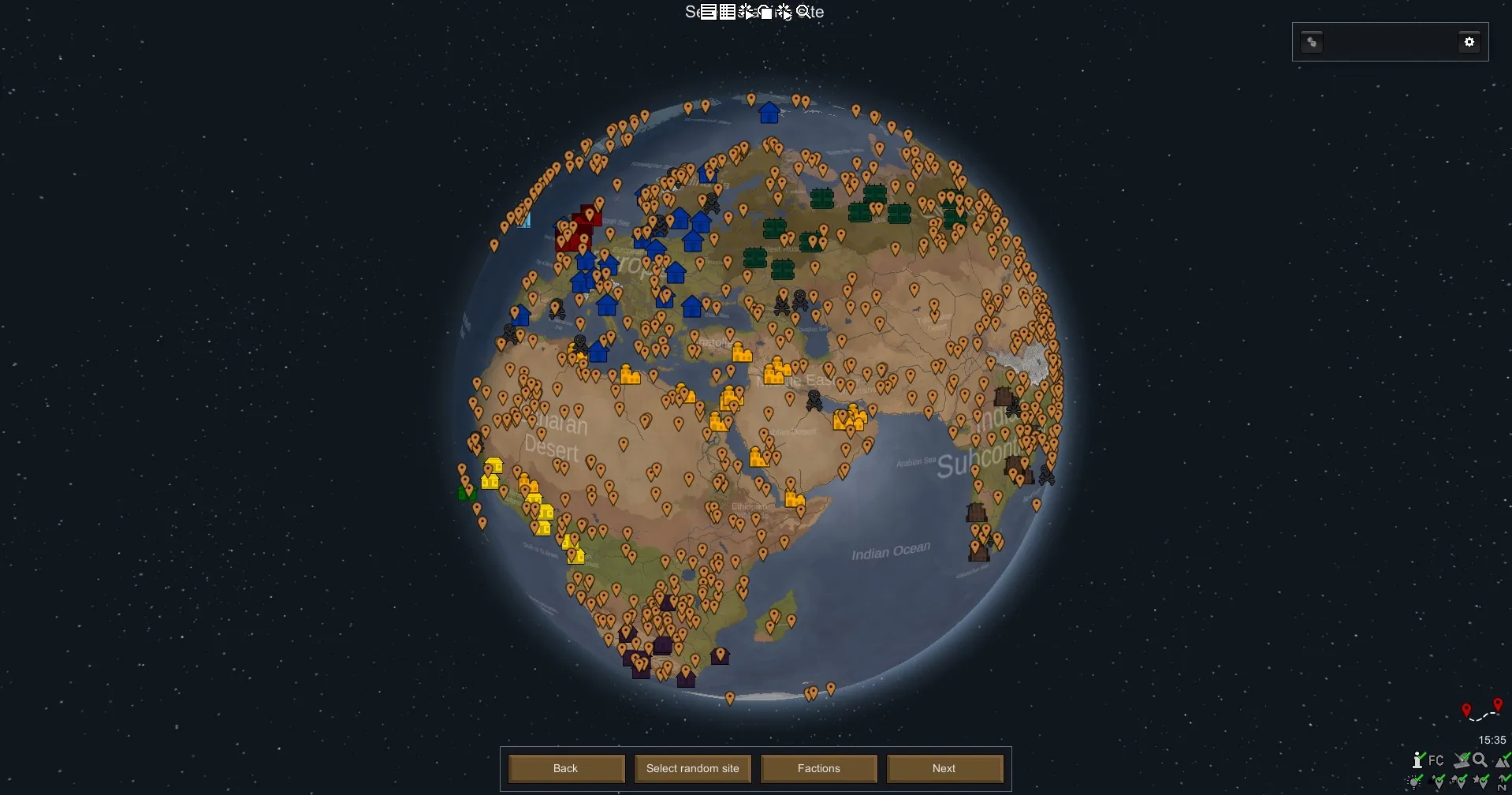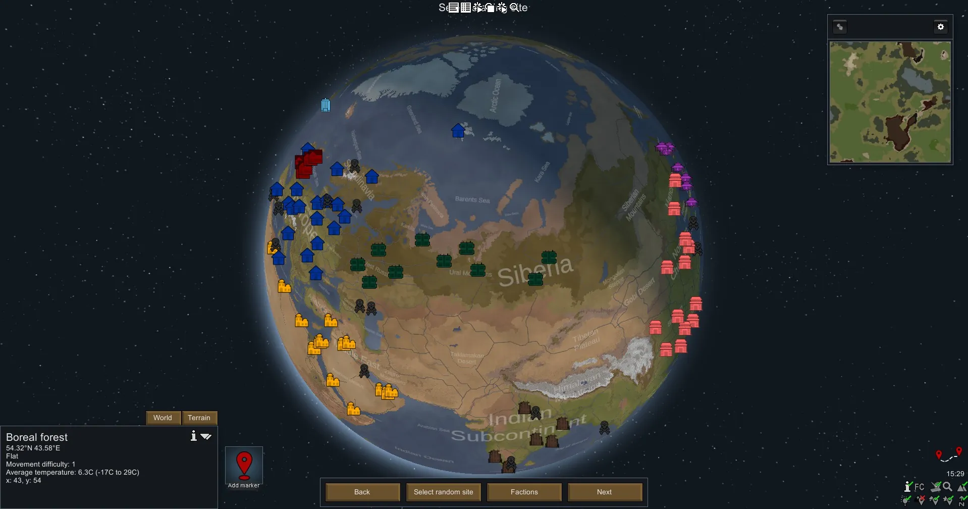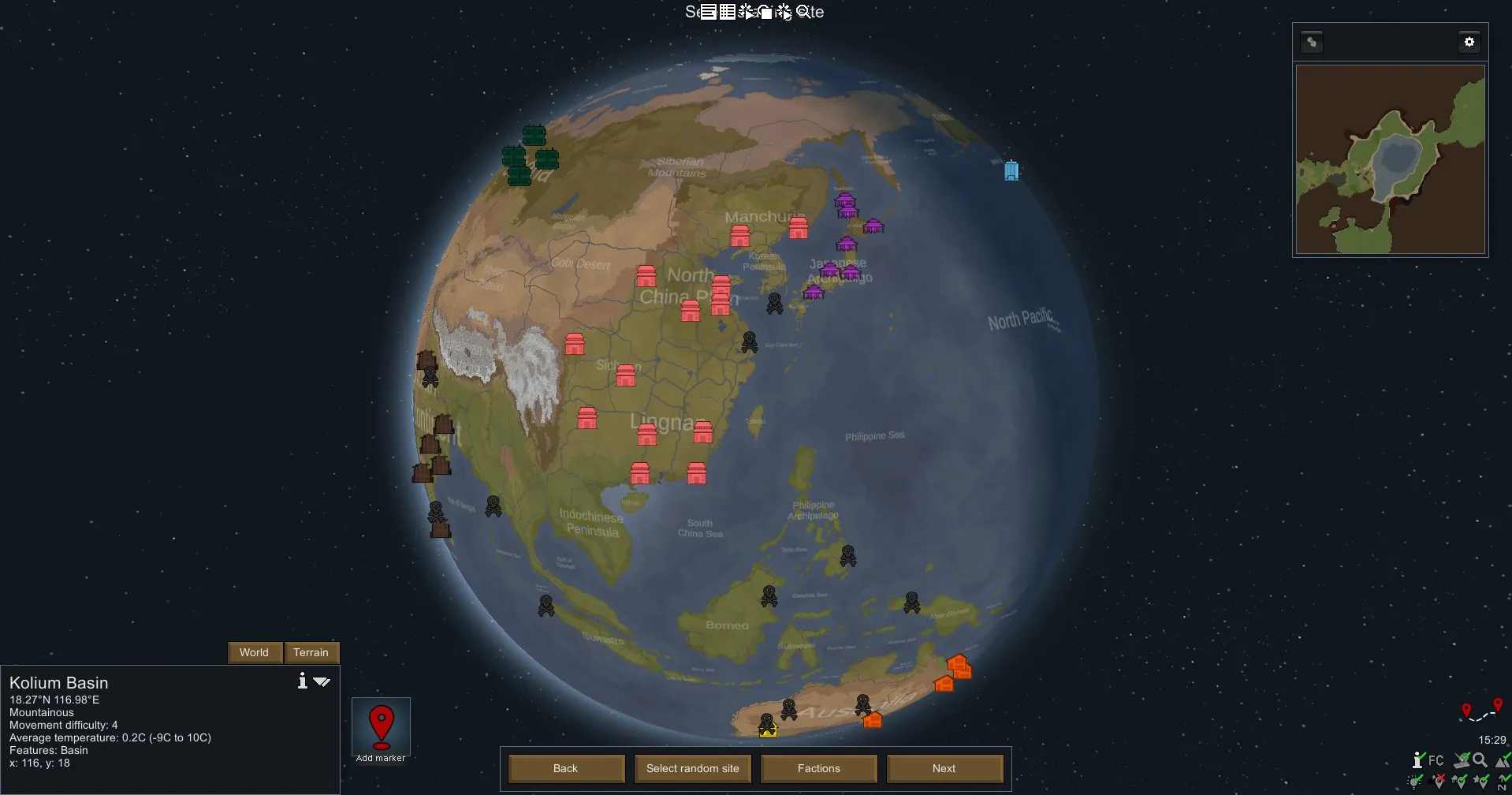 Our homeplanet in Rimworld. Odyssey version with landmarks and the new biomes.