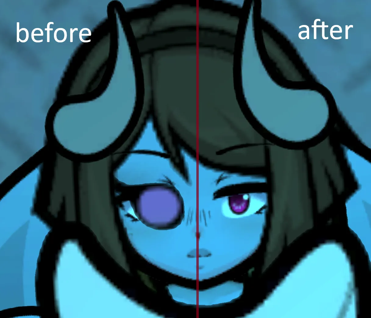 In the original, the eyes from the "pink" gene are drawn on top of the animated eyes from Facial Animation, causing a double overlap.