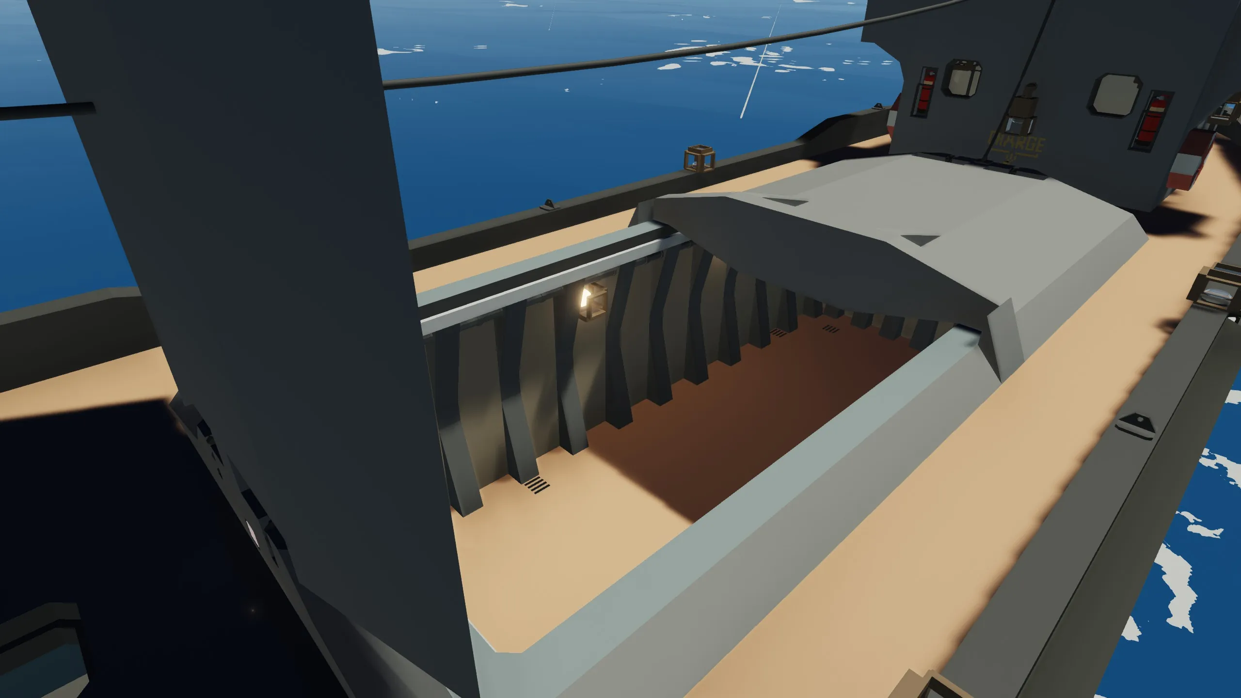to water pumps and a scuttle feature and working cargo doors