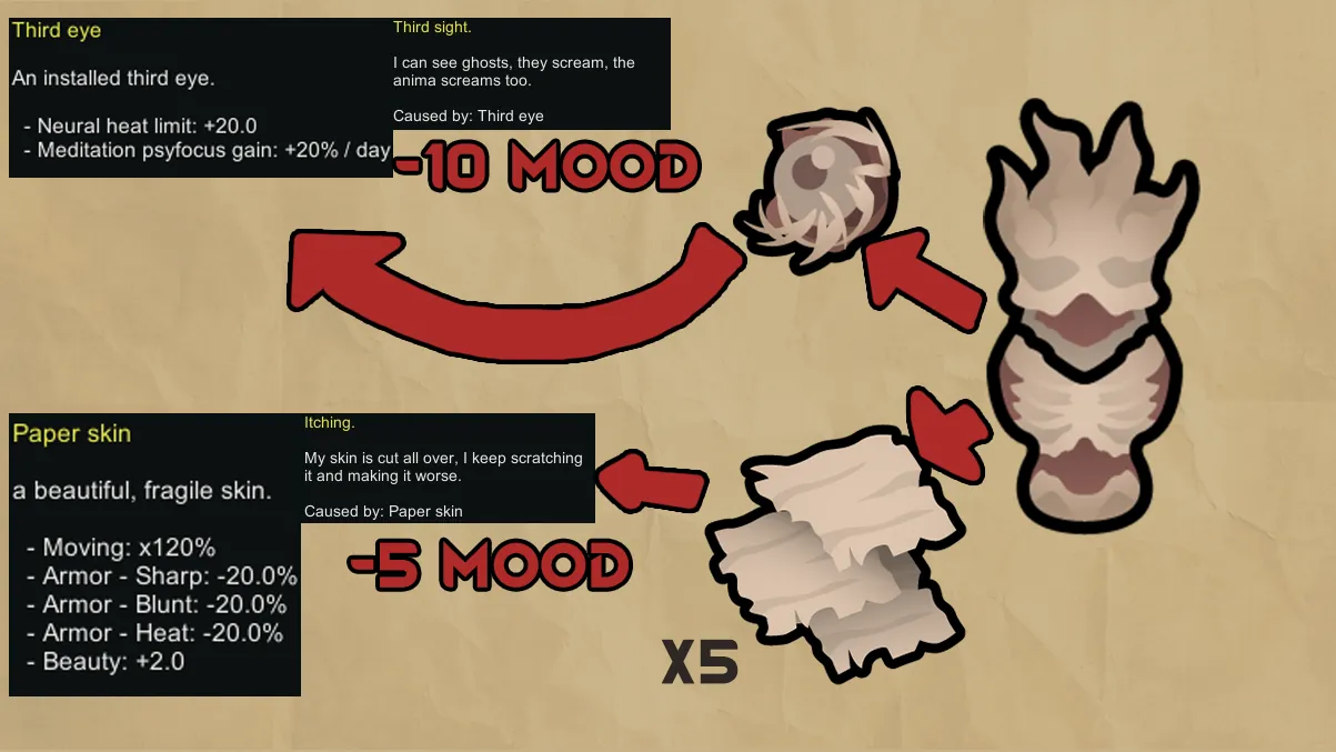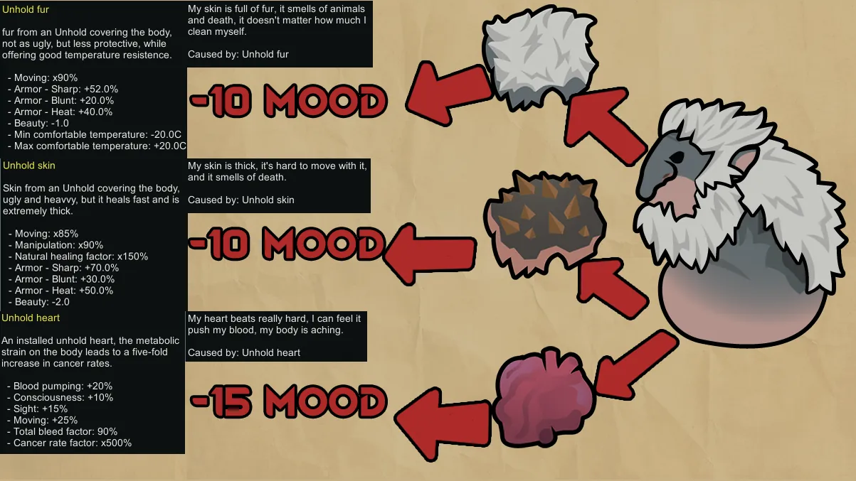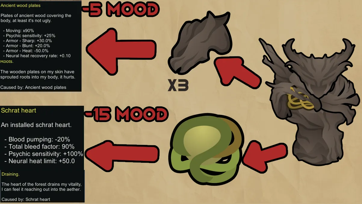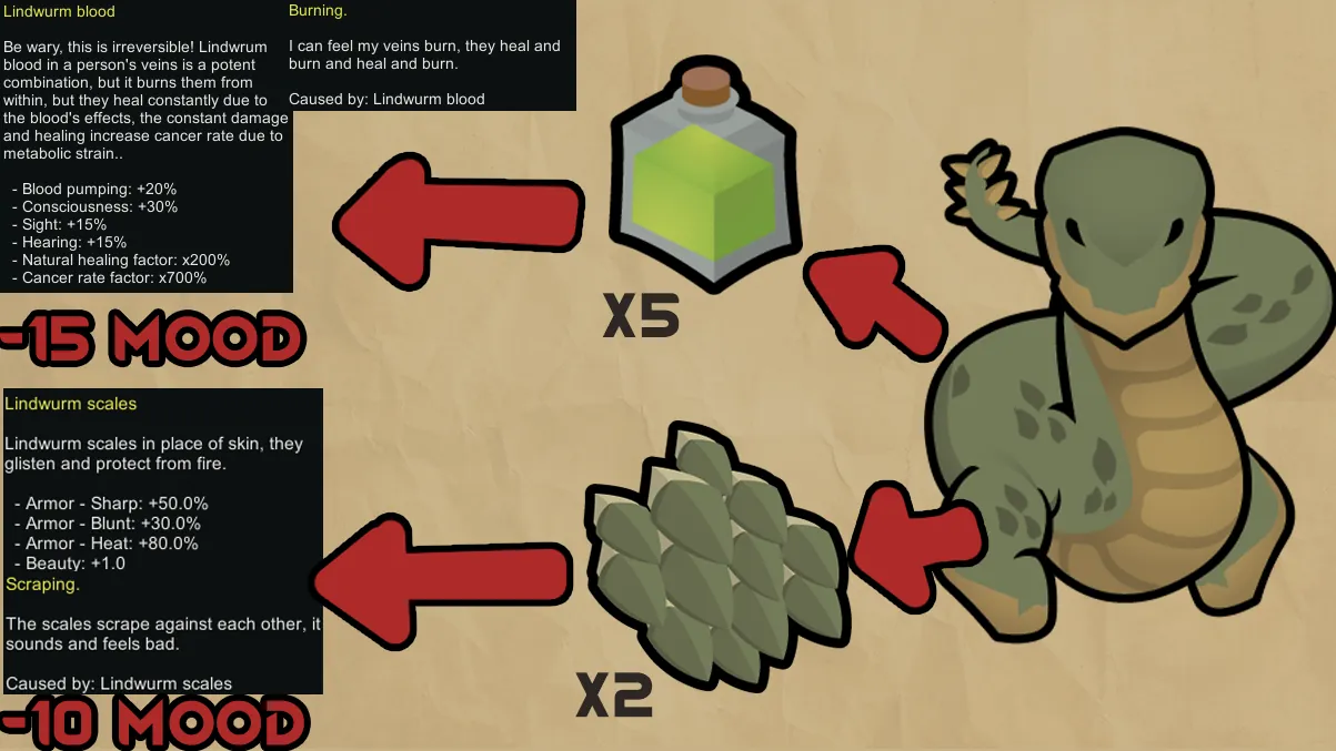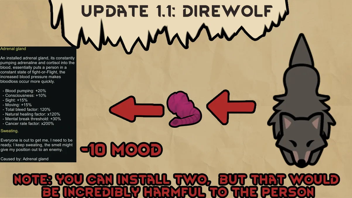 Update 1.1: added adrenal glands from dire-wolves + trait dependent moods