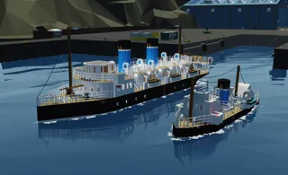 Medium sized Oceanliner with working lifeboats, lights, interior & sinking.