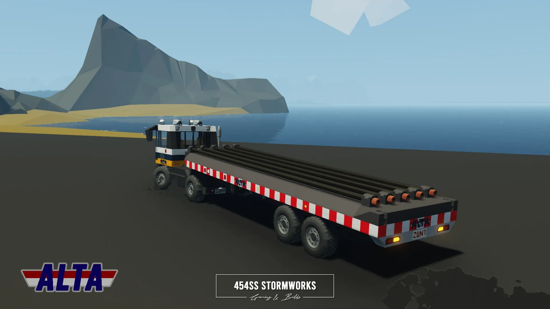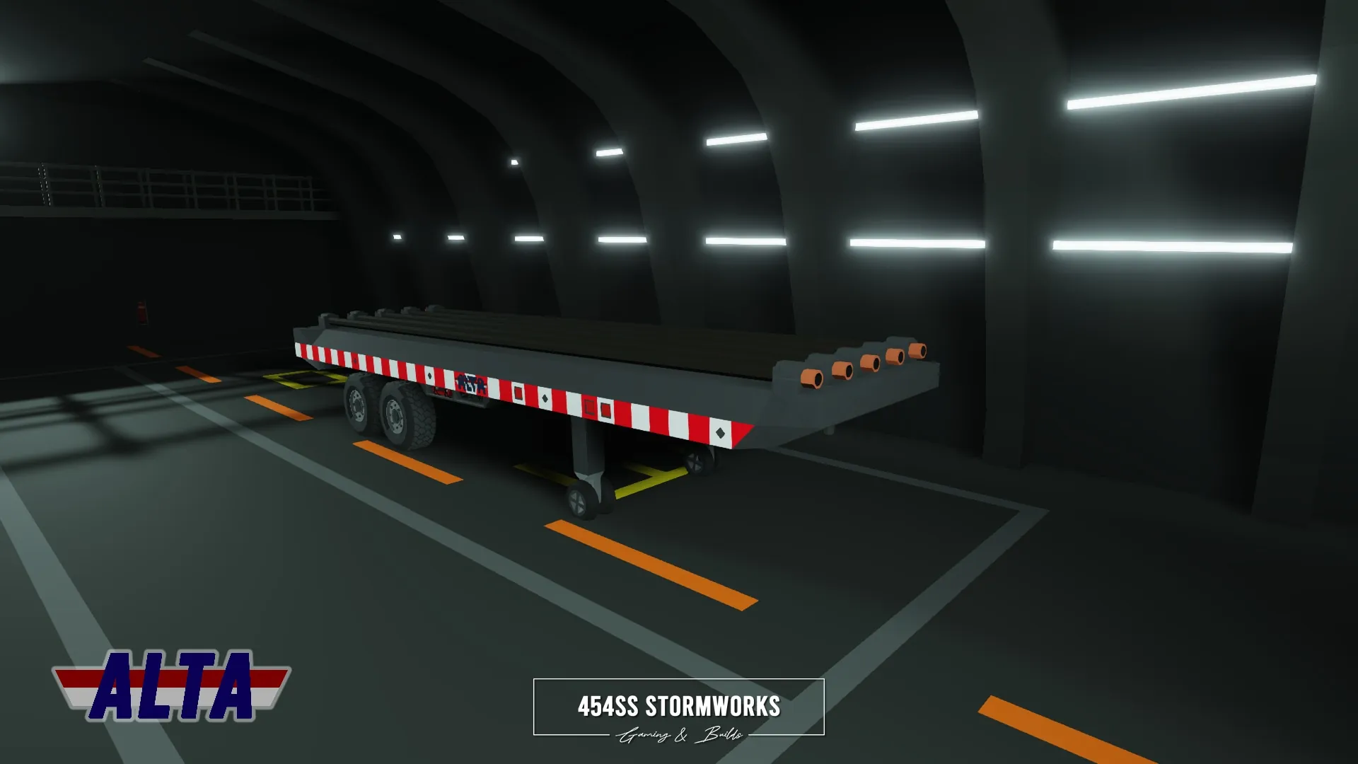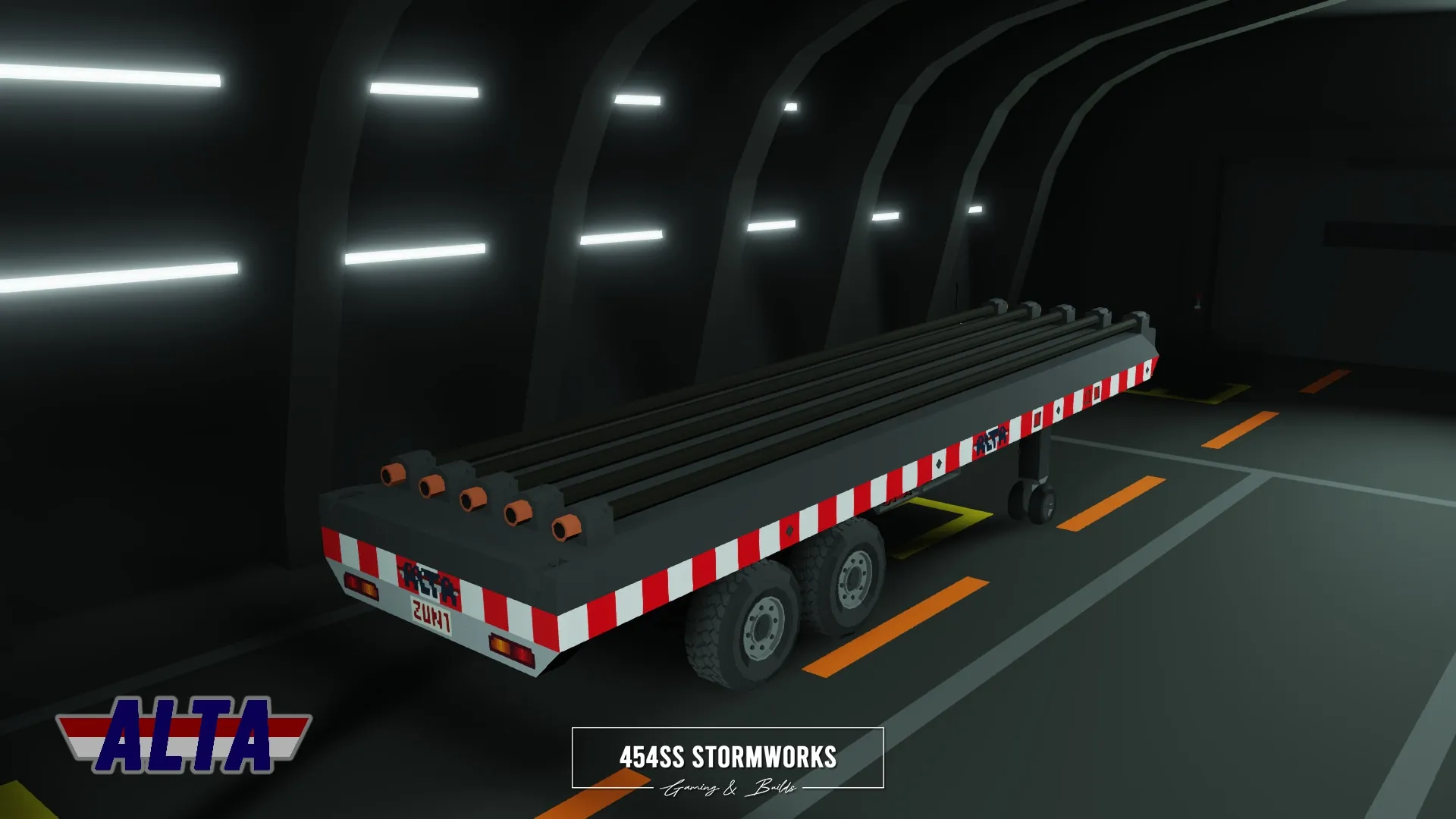 Oil drilling rod transport trailer owned and operated by ALTA Industrial Corp., a (fictional) mining, drilling and transportation company. Intended to be used with an external rod loader.