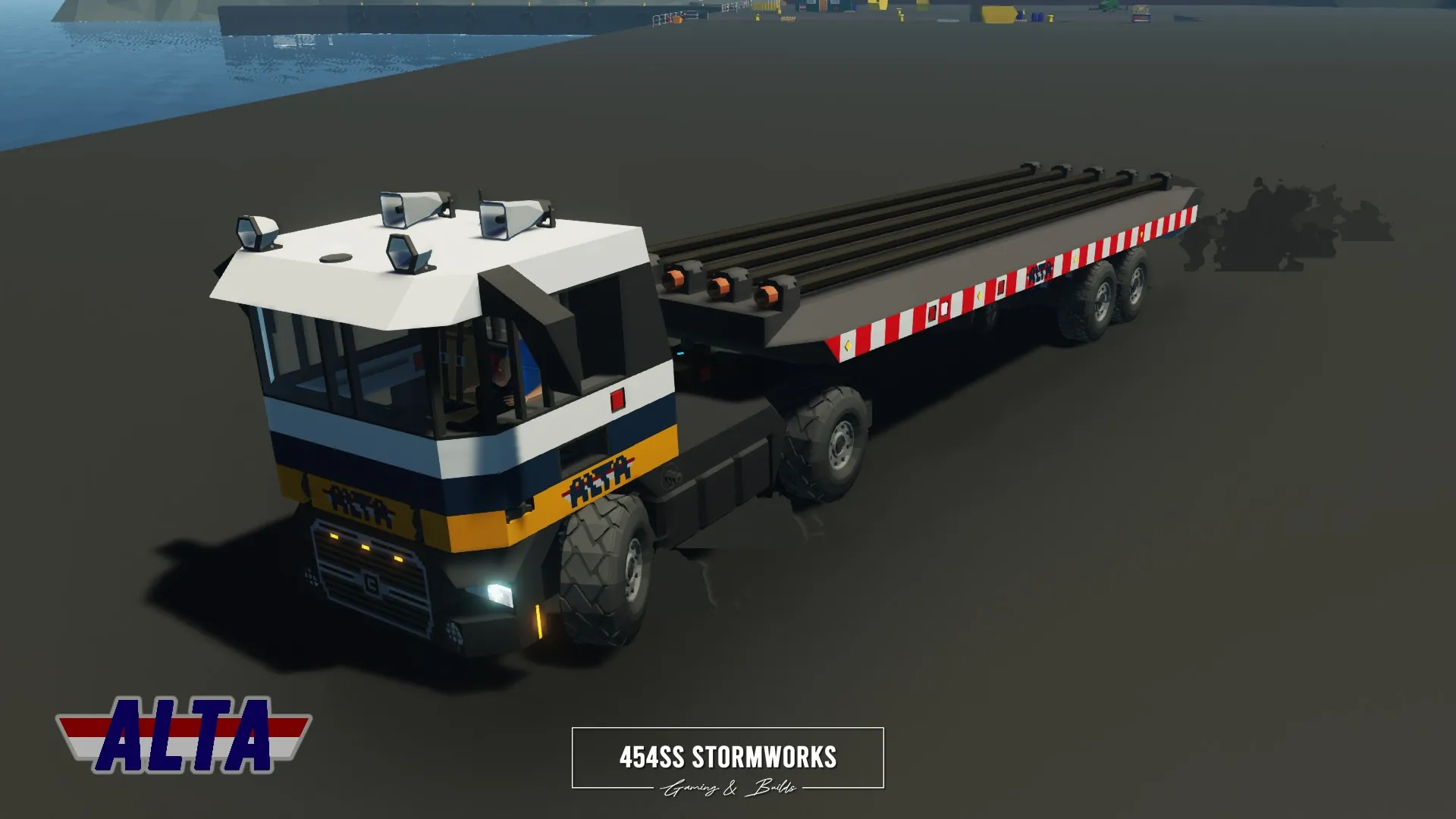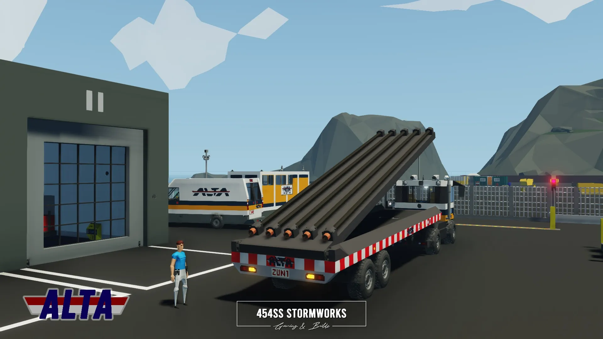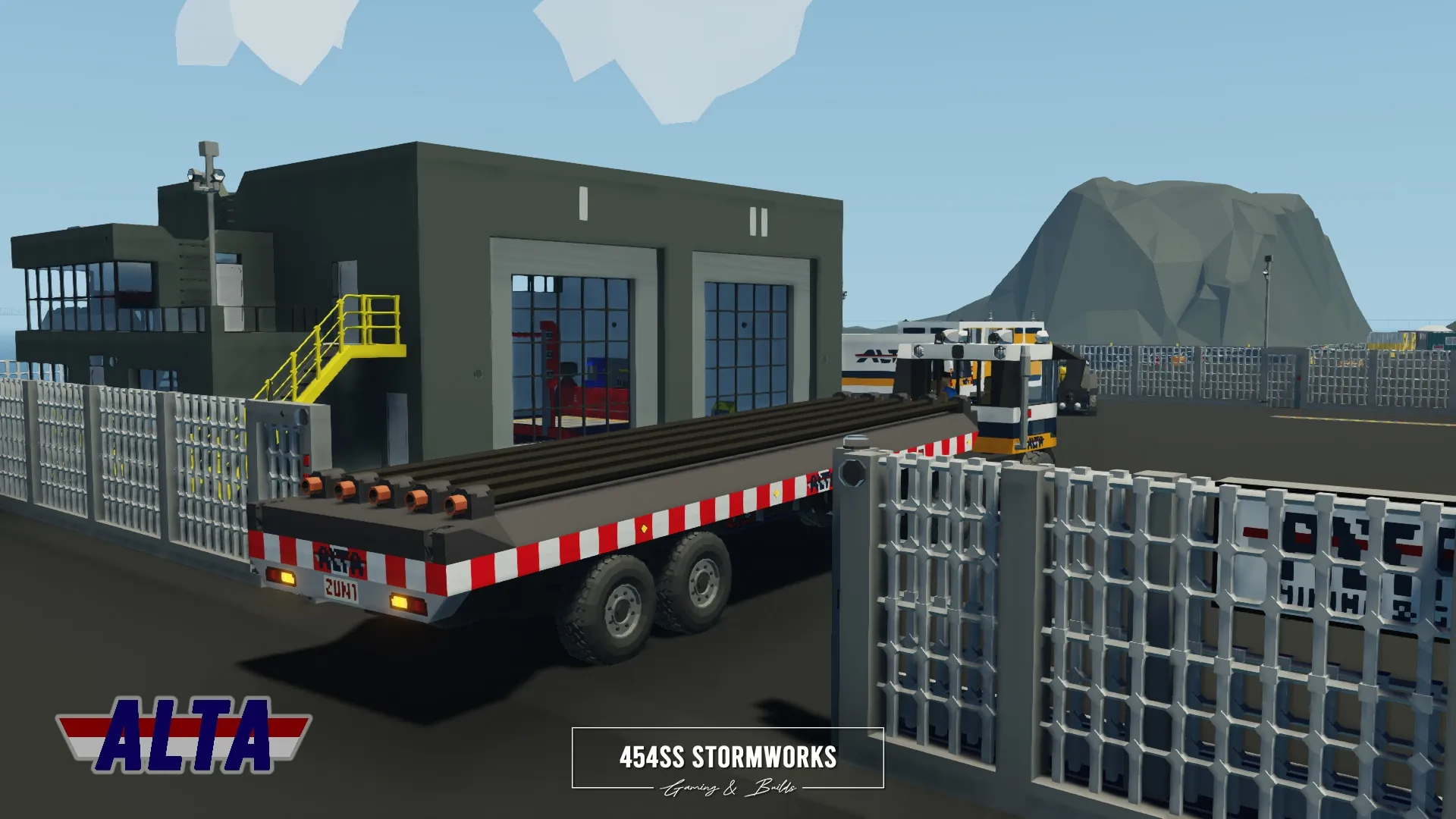 Oil drilling rod transport trailer owned and operated by ALTA Industrial Corp., a (fictional) mining, drilling and transportation company. Intended to be used with an external rod loader.