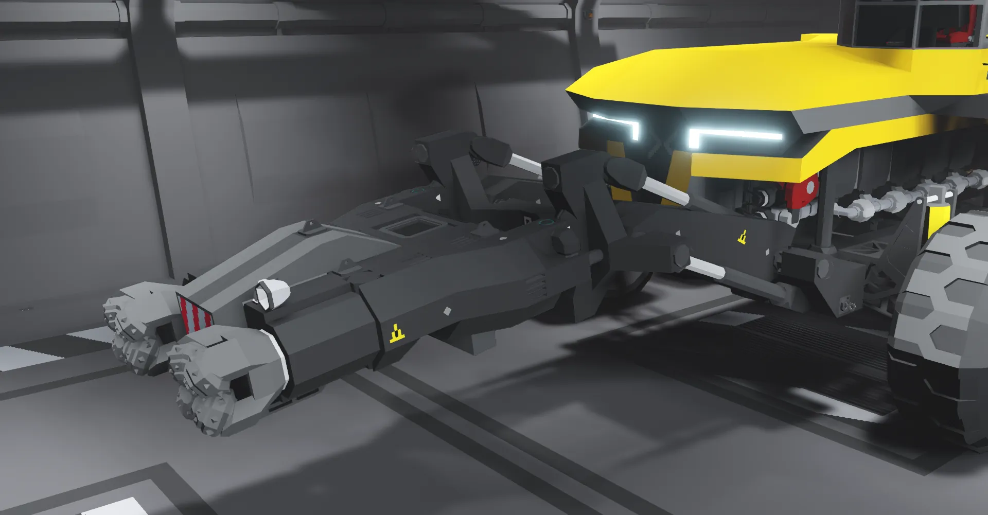 Designed to lock seamlessly onto the Arcus via the Q9Tach standard, it turns the vehicle into a dedicated mining platform — heavy, focused, and unhurried.