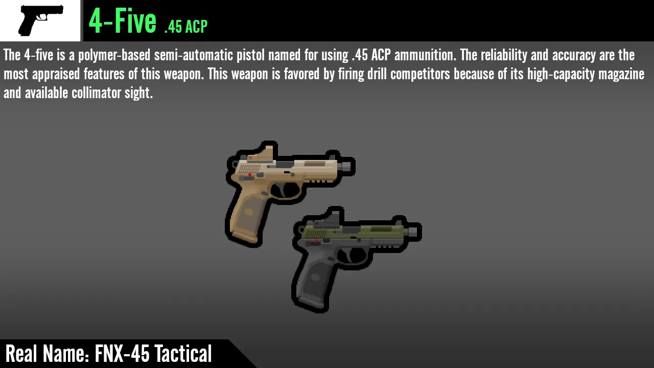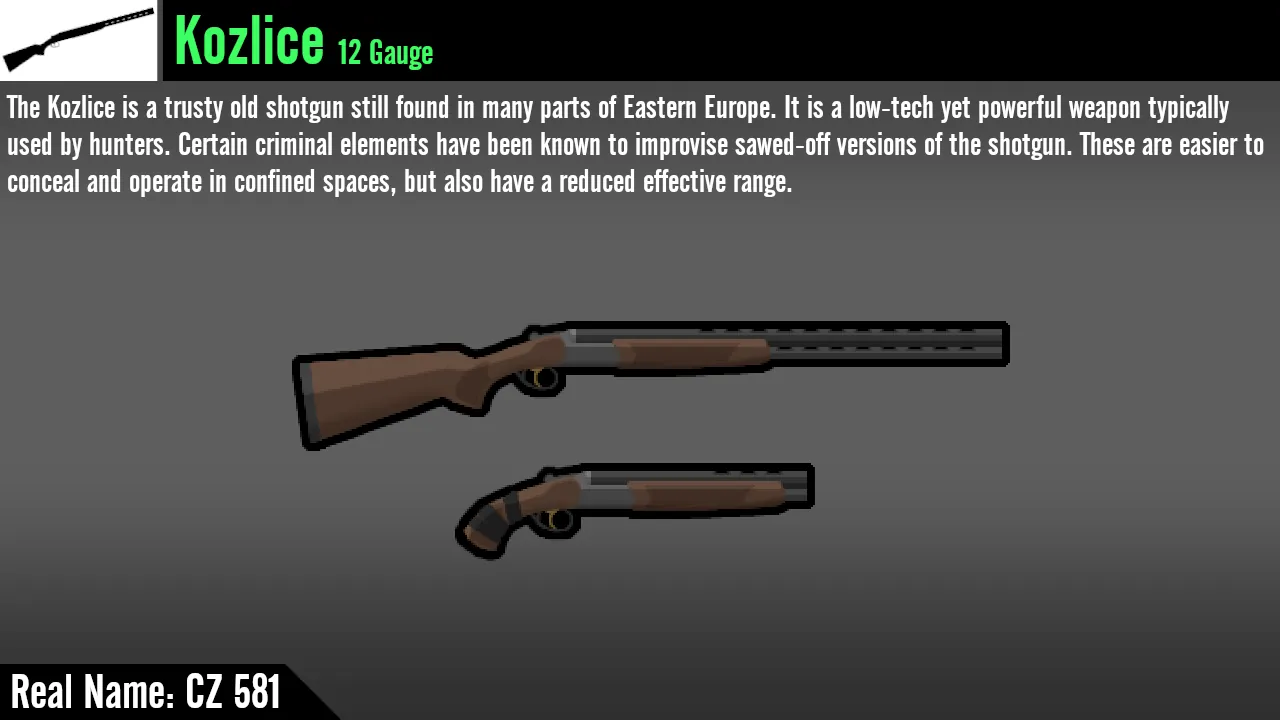 A: Ain't no way I'm adding a Chiappa Rhino in .45 ACP. As for the ASP-1 Kir using 12.7x55 instead of 12.7x54, the two calibers are basically exactly the same, no point making an entirely separate caliber for it.