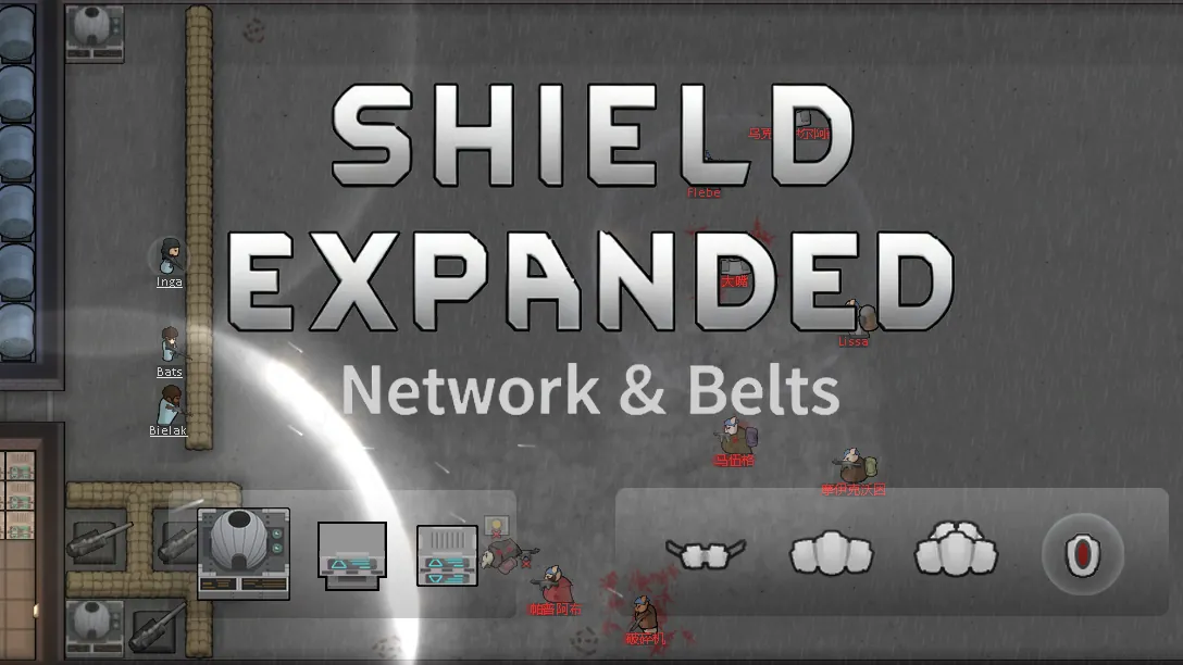 The expanded shield belt series is rewritten by inheriting from the vanilla CompShield. The network shields are rewritten with reference to CompProjectileInterceptor, constructing a ShieldNet class indexed by the PowerNet class. Recipes, research projects, etc., are added normally.
