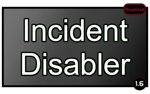 Adds the ability to disable any incidents during a game in progress. All incidents, either vanilla or those added by mods, will show up in the mod configuration menu where they can be toggled off and on.