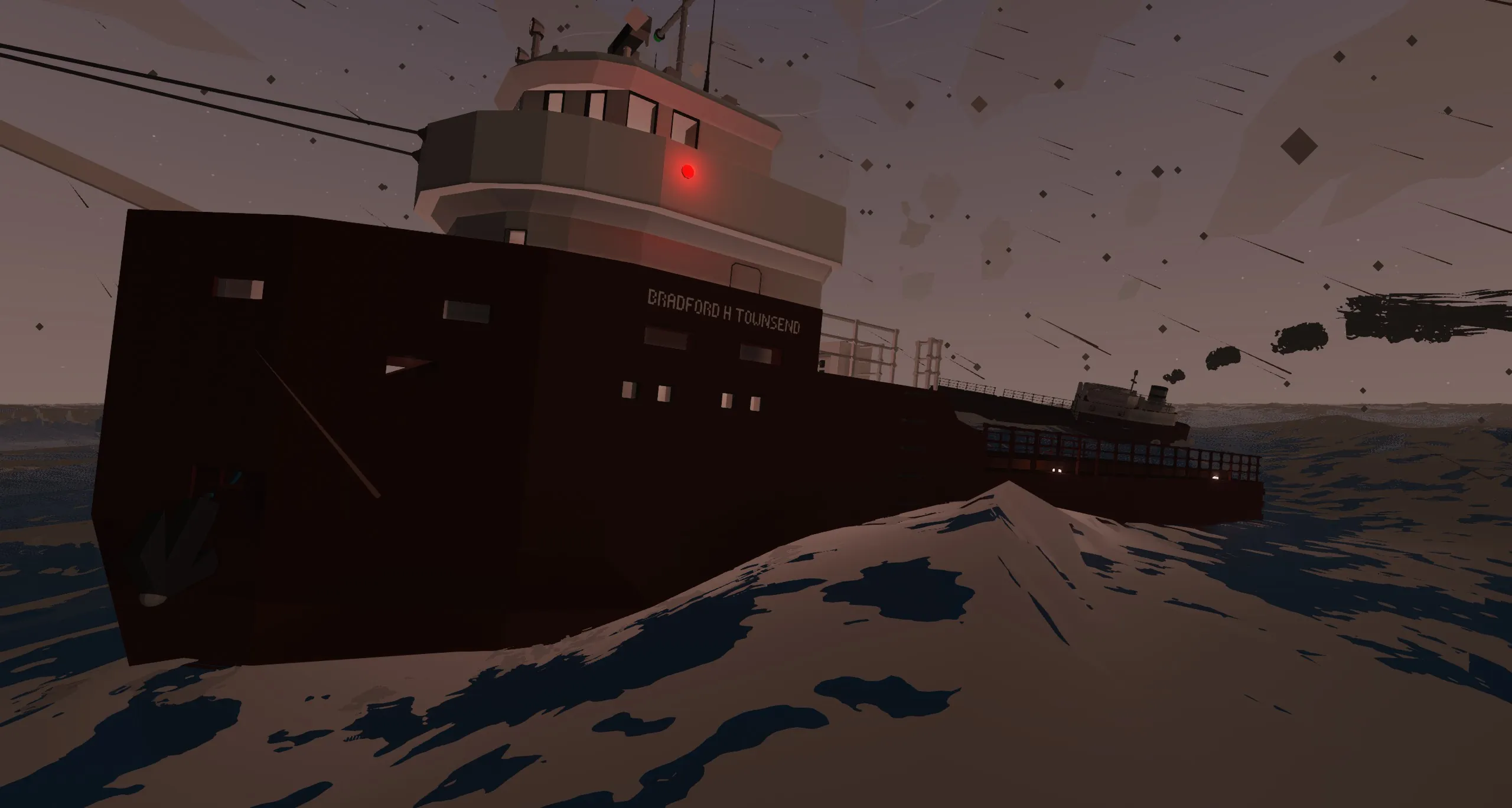 The Bradford H. Townsend was an iron ore freighter on the Great Lakes. Launched in 1948, the Townsend was the first ship to be built for the Duluth Steamship Company to be diesel powered, as well as the first new ship for them after the war. She was famous in the Duluth area for surviving heavy storms and serving well into the season after most ships had been in winter layup for weeks. DSC was known to have ships out late in the season most years in general, largely due to the companies cutthroat nature which helped it grow in the first place. The Townsend went out especially late, even more so than other DSC ships because DSC believed that ship technology had come so far in the 15 years since the last one of their ships was launched that there was less risk to it. This approach was mirrored with the company's other postwar diesels as well. This all back fired on the company in late November of 1961, when the ship's captain decided to take her out, despite forecasts for a particularly nasty blizzard in order to get his crew home in time for Thanksgiving. Leaving Duluth bound for Detroit, this was to be the ship's last voyage of the season before it joined the rest of DSC's fleet in winter layup at the Soo. Leaving port the weather wasn't terrible for November on the lakes, but just after nightfall a massive storm started up, snow cutting visibility to almost zero and massive waves battering the ship from her front quarter. Around 4am, the Coast Guard Station in Duluth received a distress call from the Townsend, saying she was taking on water. She reported her position to be about 40 miles south of Isle Royale in the middle of the lake, a figure that was off by more than 20 miles. Another distress call would come at 4:16, saying that the stern of the ship was no longer visible from the wheelhouse after the lights had gone out. They said that they were now making 0 knots. A new position was given that they'd turned north and believed to be about 1 mile north of their last position, waves now coming from dead ahead of them. The last thing the Coast Guard station heard was the sound of glass breaking in the wheelhouse before the transmission went dead as the ship finally lost power. Two crewman from the engine room made it to the lifeboats and later testified that the stern snapped off of the bow and lost power. They said the bow remained powered and afloat for ten more minutes until the wheelhouse flooded and she went down. They were the only survivors of the 33 man crew.