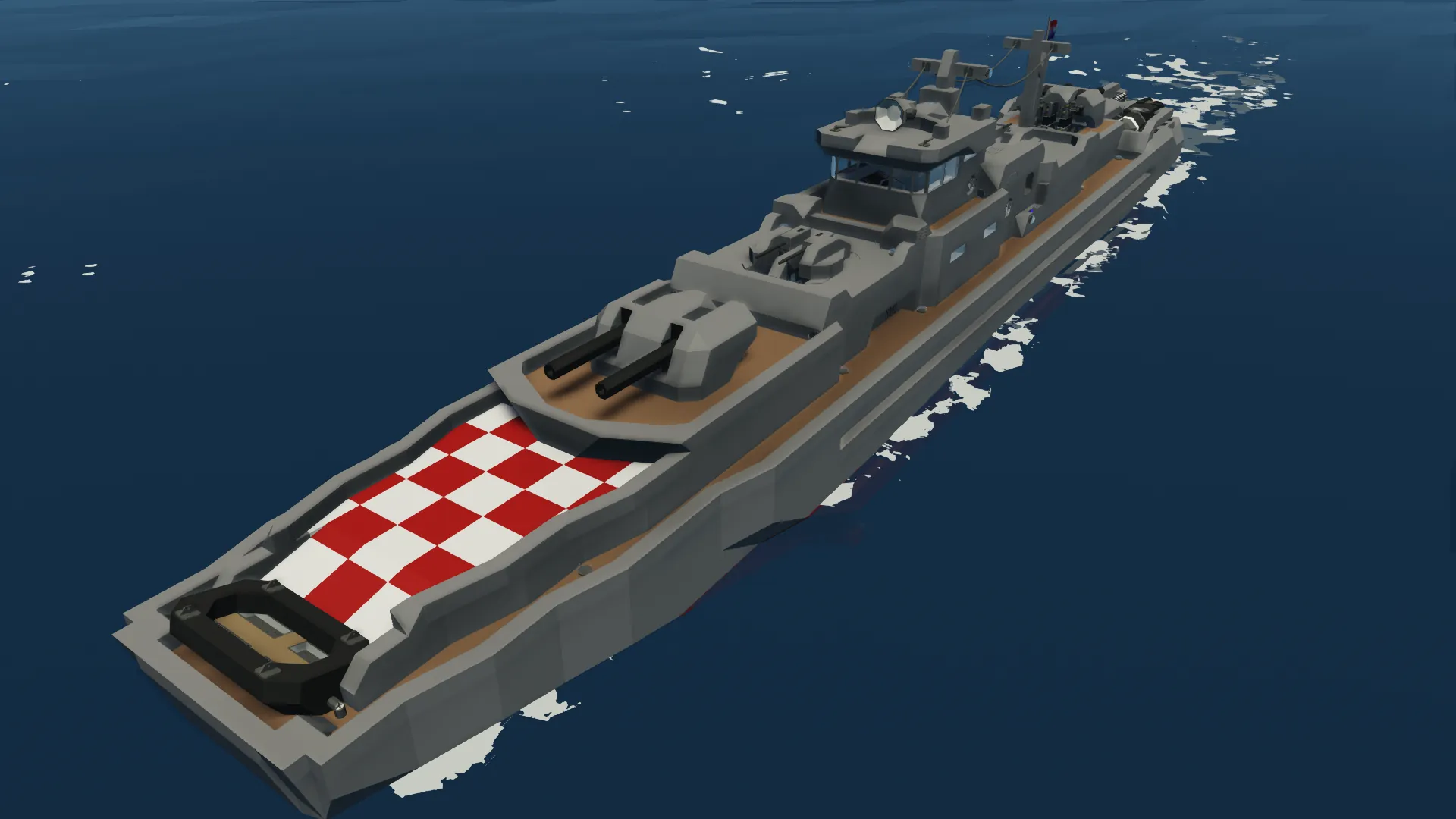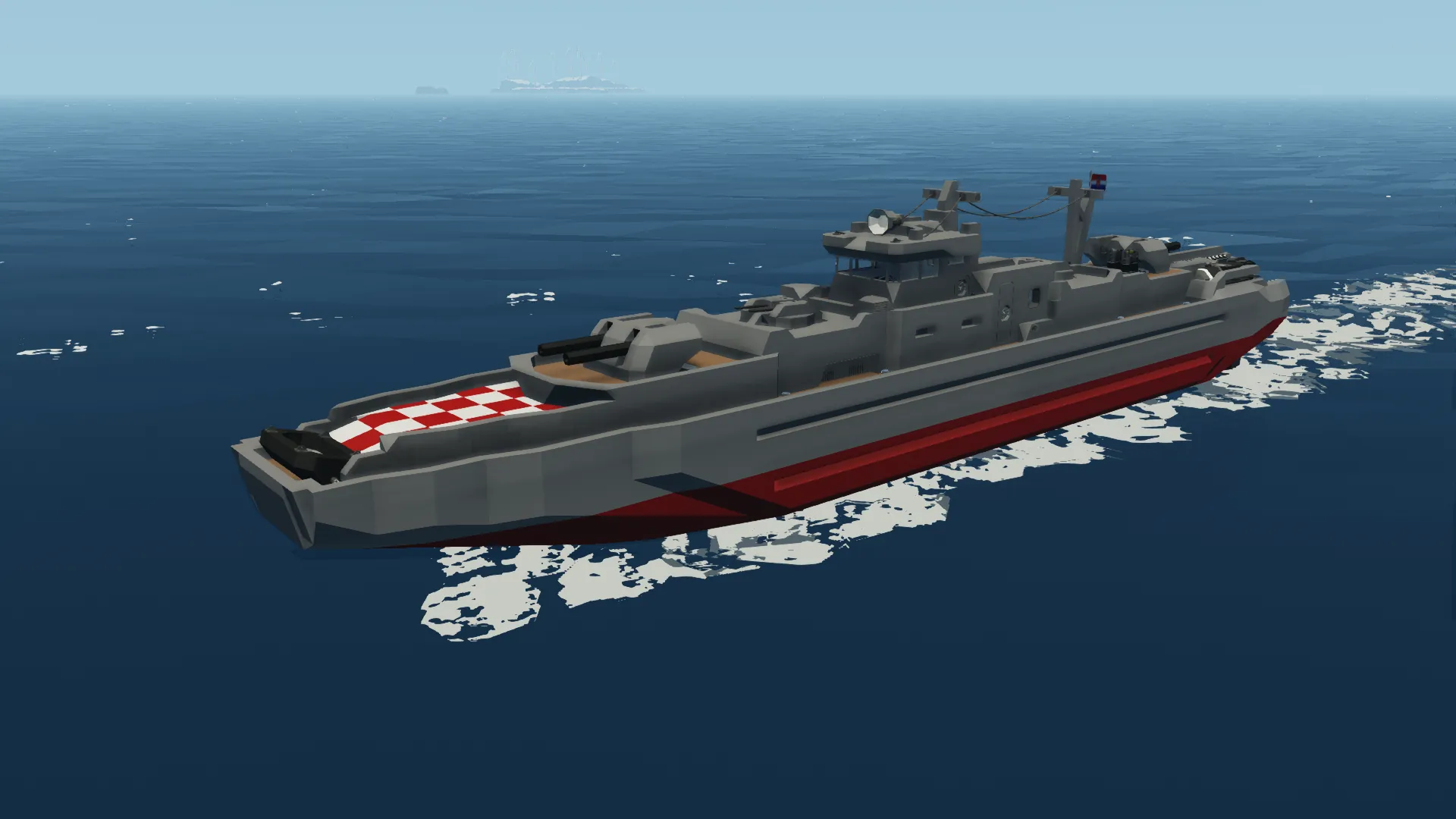 Fights best against other small boats but also has 2 sonar guided torpedoes that can take out bigger targets.