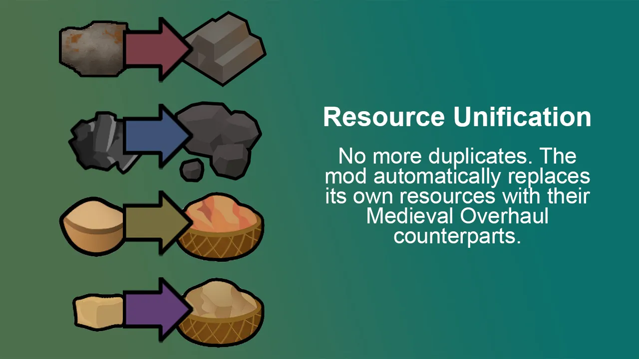 [*] [b]Full Resource Unification:[/b] The mod automatically replaces its own resources ([b]Tallow, Salt, Charcoal, Garlic[/b]) with their MO counterparts, eliminating duplicates.