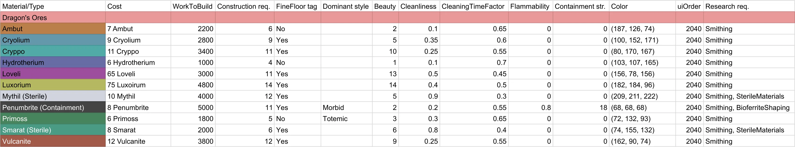 [*] [url=https://steamcommunity.com/sharedfiles/filedetails/?id=2581058017][b]Dragon's Ores[/b][/url] - All 11 metals have been given fitting floor properties.