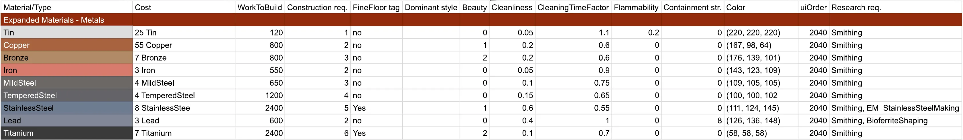 [*] [url=https://steamcommunity.com/sharedfiles/filedetails/?id=3333419387][b]Expanded Materials - Metals[/b][/url] - Tin, Copper, Bronze, Iron, MildSteel, TemperedSteel, StainlessSteel, Lead, Titanium + sterile tiles respect using stainless steel for the recipe if option is toggled.