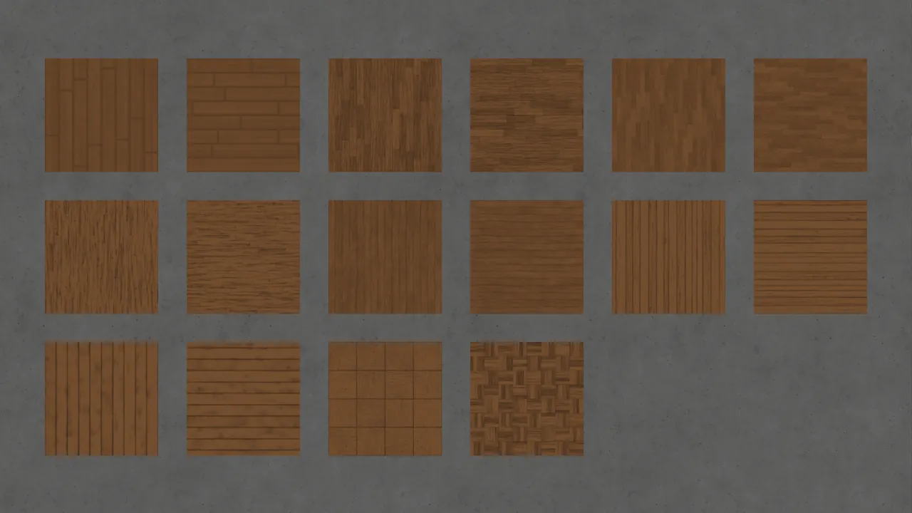 Wood and carpet are a bit special, given that vanilla only has 1 material for each, and carpets use the color picking system, rather than deriving color from the actual material. To deal with those, my plan is to make distinct "normal" and "fine" variant textures for each, so that you can have more patterns, but not be require to spend tons of materials on "fine" flooring, just to get a specific look.