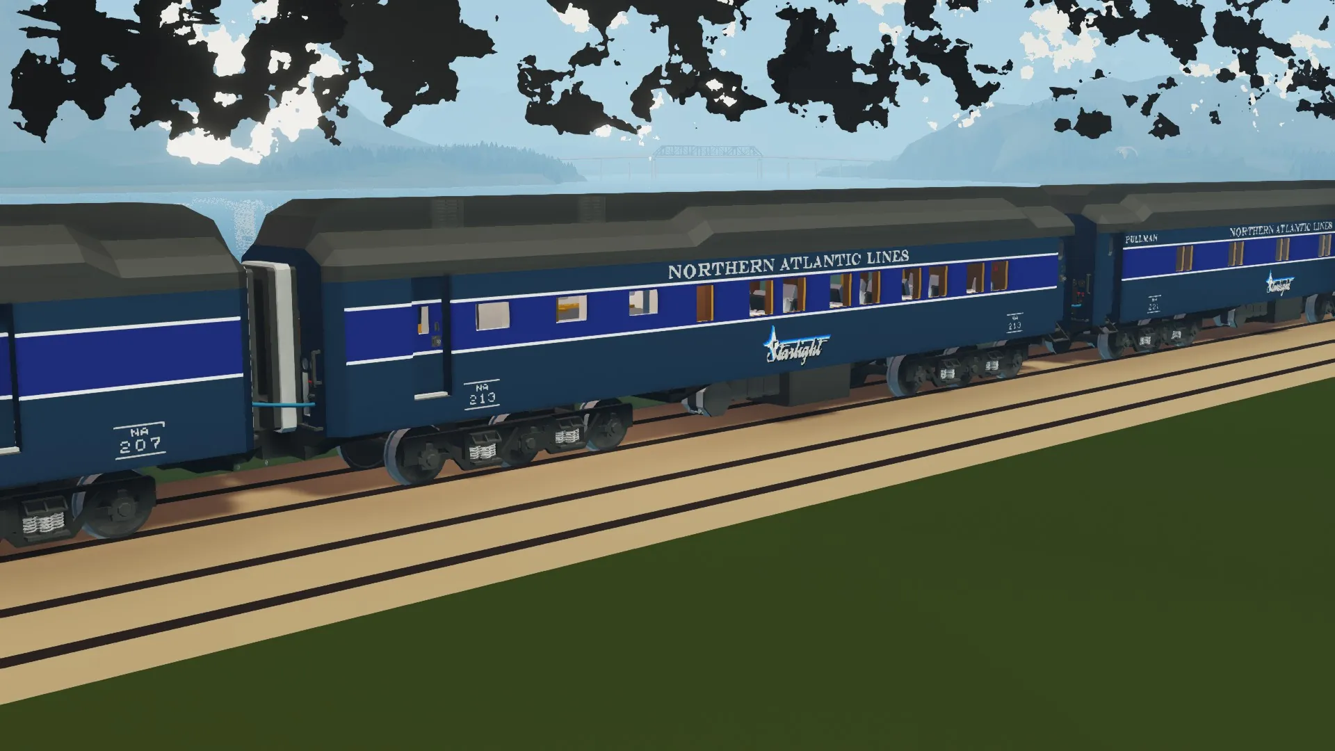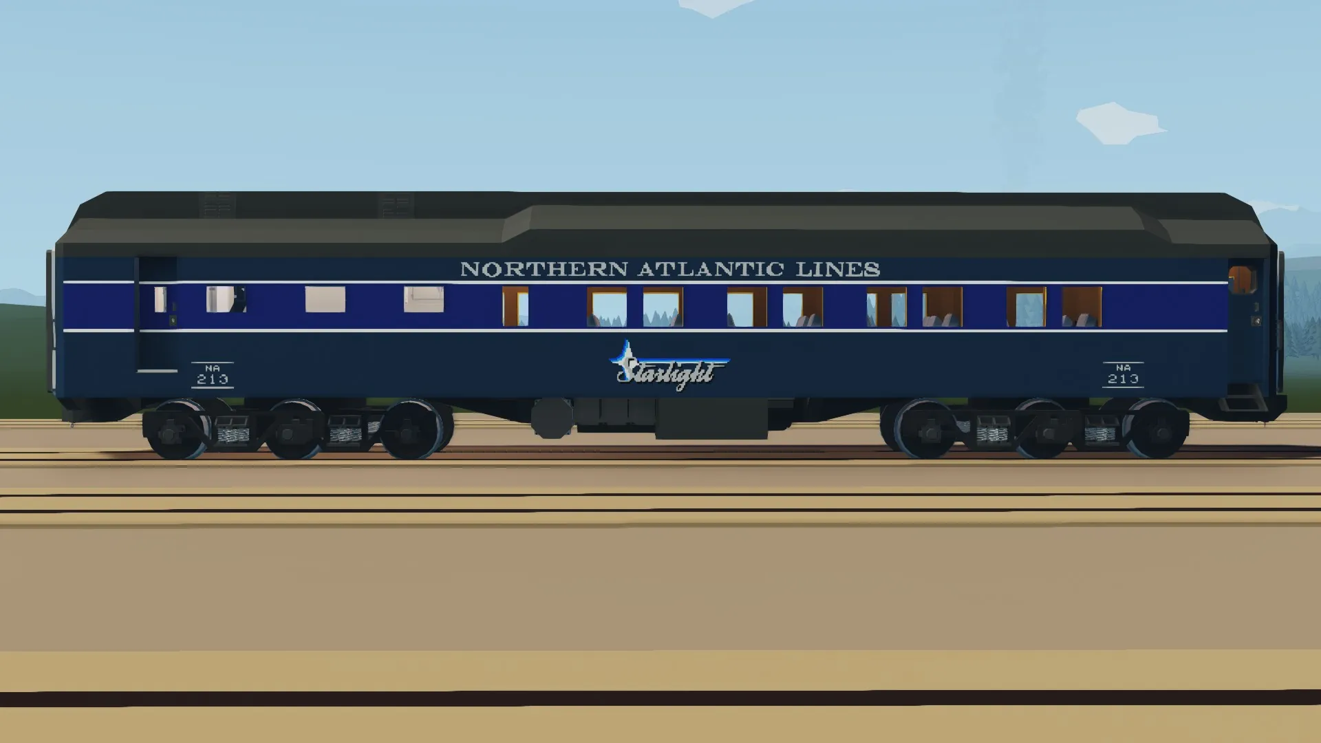 The (fictional) Northern Atlantic Lines Starlight is based on Southern Pacific Lines Starlight and Lark express passenger services. Painted in a blue livery inspired by the classic Daylight and two-tone grey liveries.