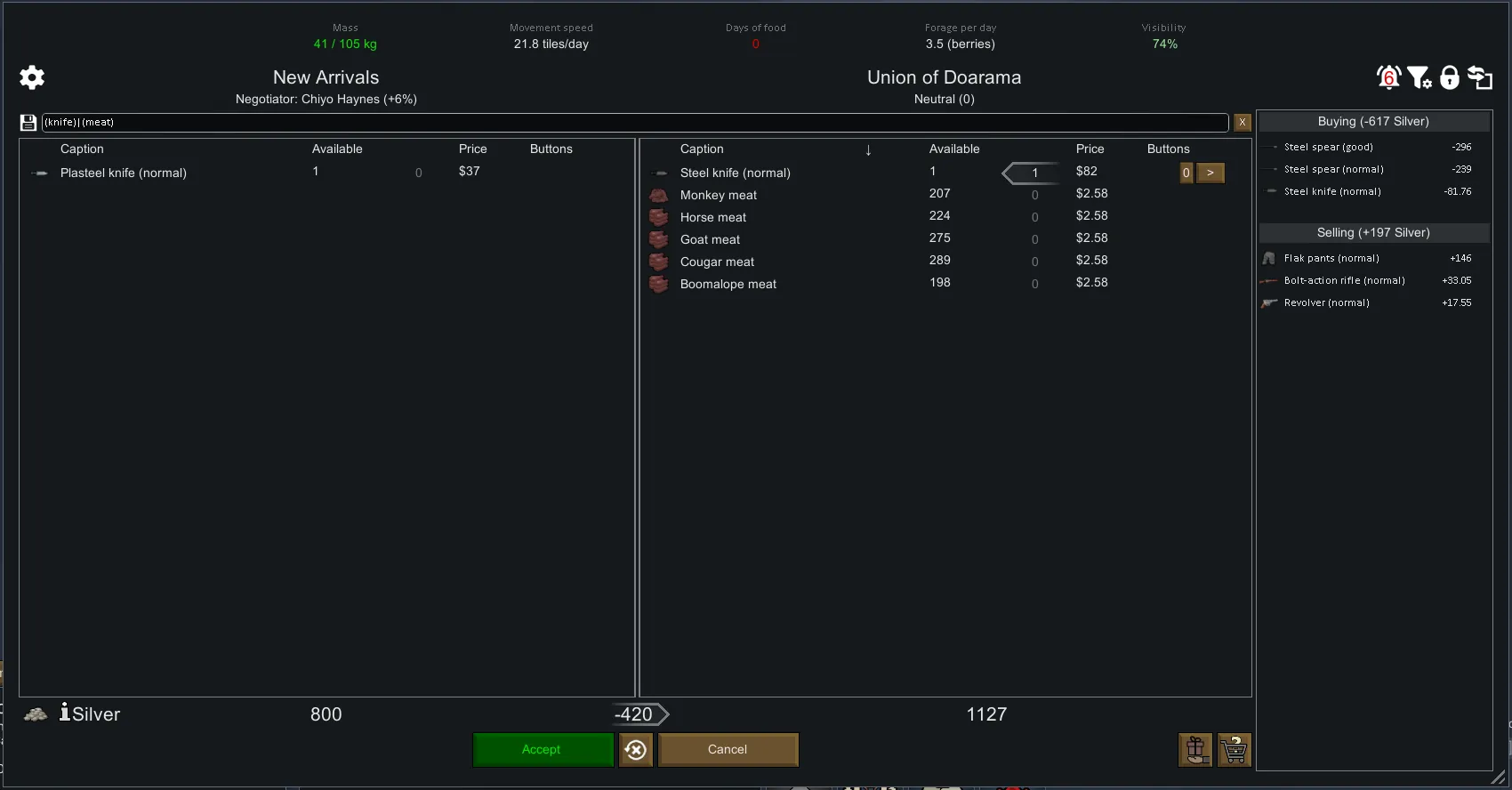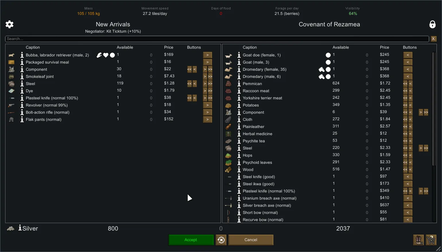 [*] Option to hide everything trader is unwilling to buy.