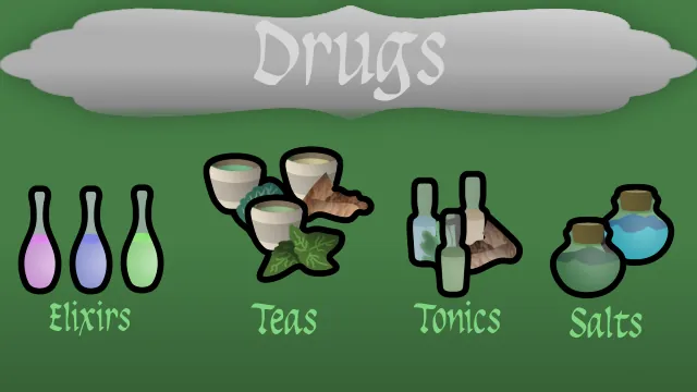 The drugs are not quite as capable as the medical supplement mod versions, but still provide a capable solution with a broad spectrum of medicinal preparations for various illnesses and conditions prior to the industrial period.