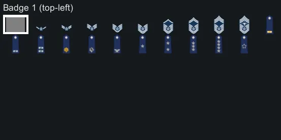 Adds pawn badges based off the ranks in the US Air Force. Currently works best when Pawn Badges are set to Large.