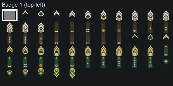 Adds pawn badges based off the ranks in the US Army. Currently works best when Pawn Badges are set to Large.