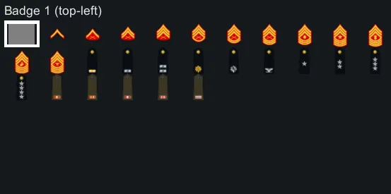 Adds pawn badges based off the ranks in the US Marine Corps. Currently works best when Pawn Badges are set to Large.