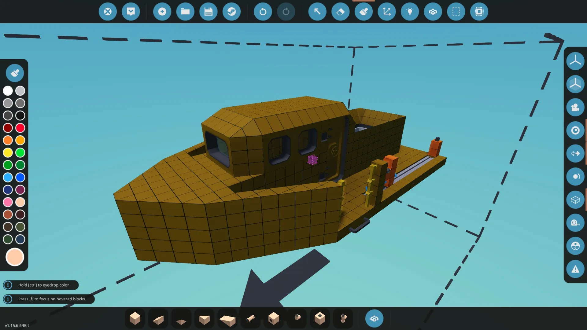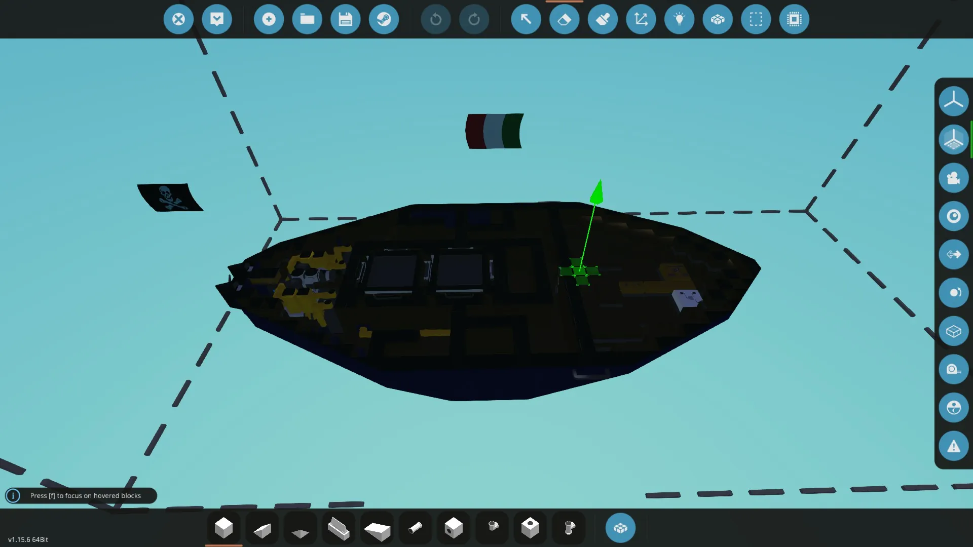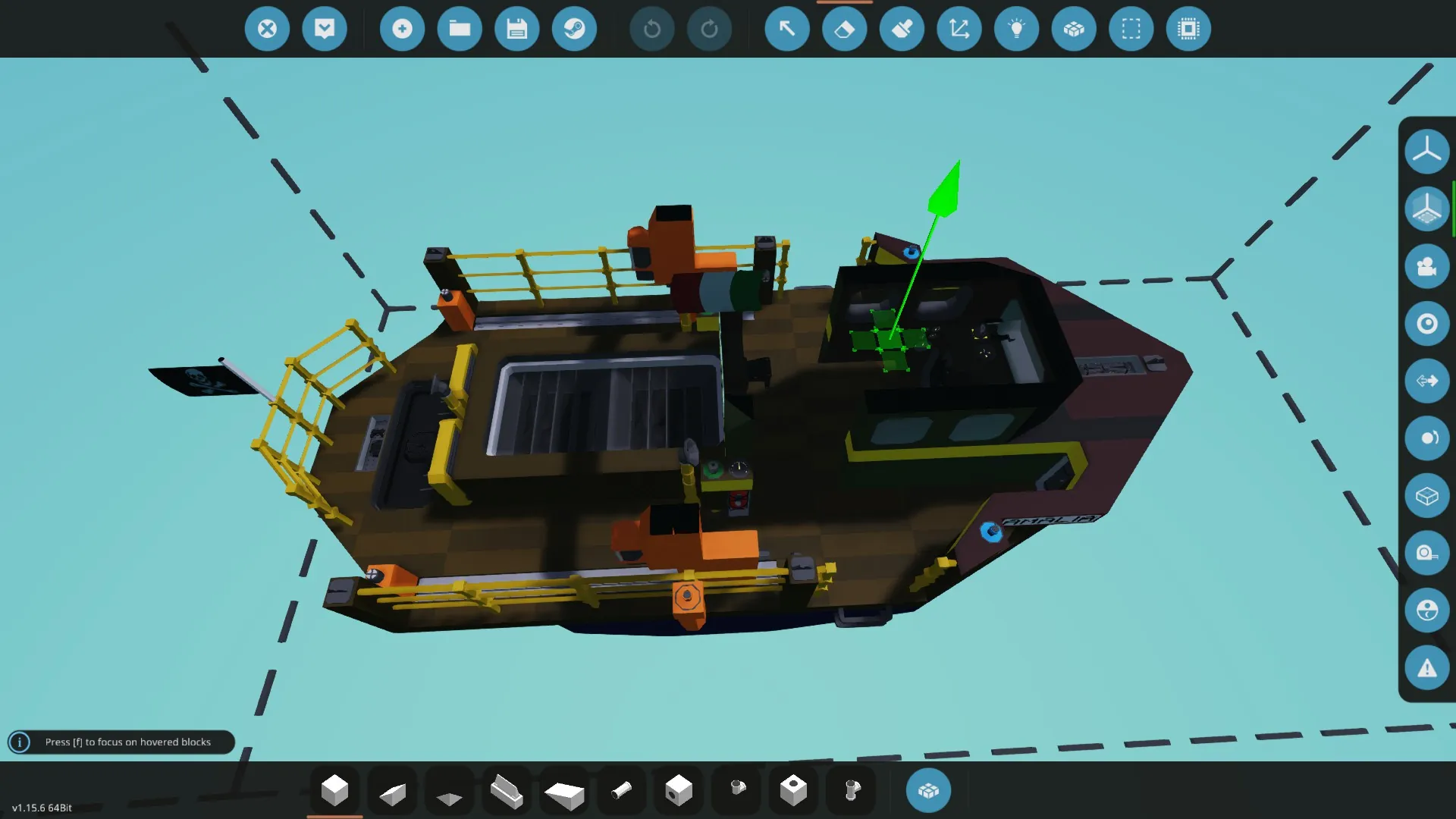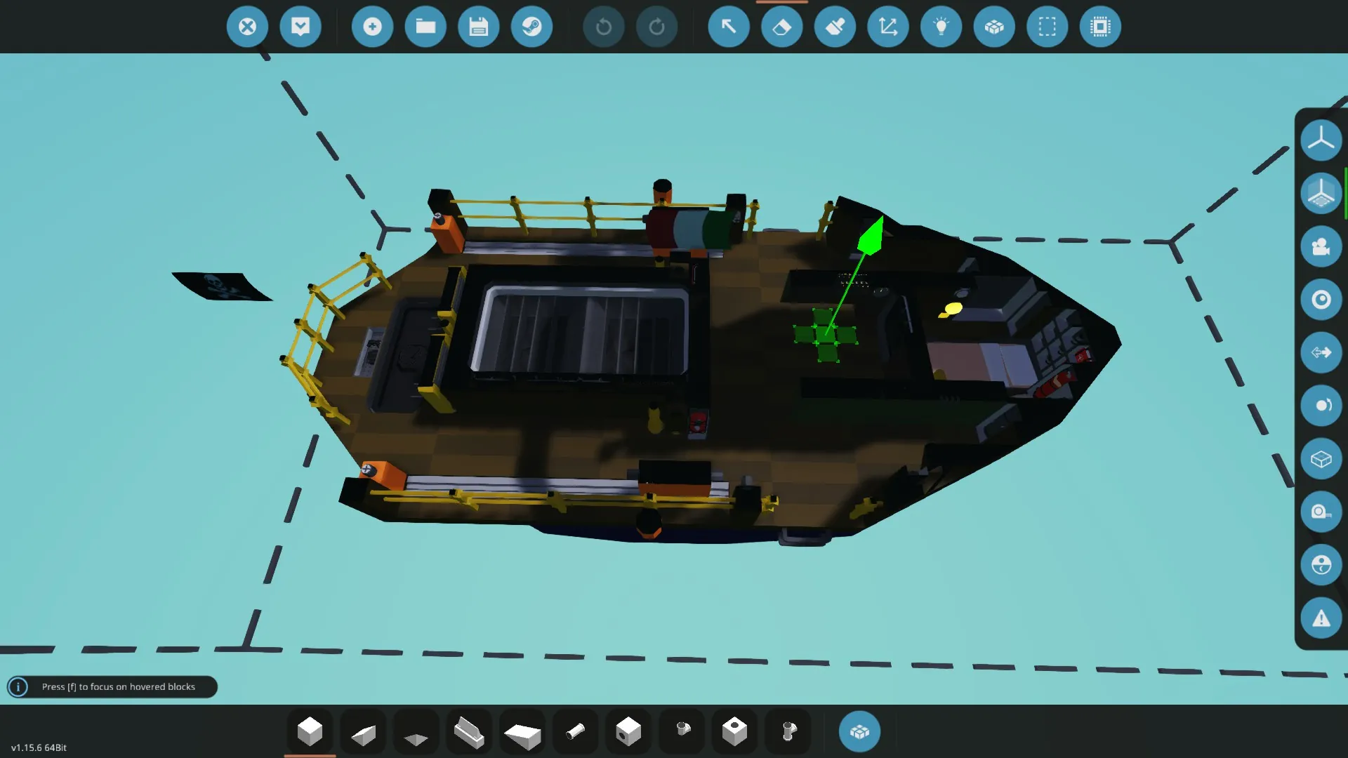 - Switch on the engines with the key at the left of the helm