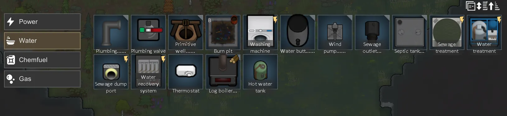 These patches leave Resources/Water with just water infrastructure, and the users of water are all in more sensible places. After all, you don't have the Electric Smelter in the Power category just because it uses electricity.