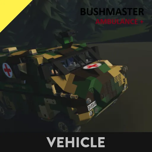 The Bushmaster is an Australian PMV (Protected Mobility Vehicle) manufactured and built by Thales. It's primarily in use by Australia, United Kingdom, Japan and New Zealand military forces. Multiple variations of the Bushmaster exist, this one being the Ambulance for recovery and treatment of injured military personnel. The vehicle was designed with a V-Shaped hull to be able to withstand and deflect blasts.