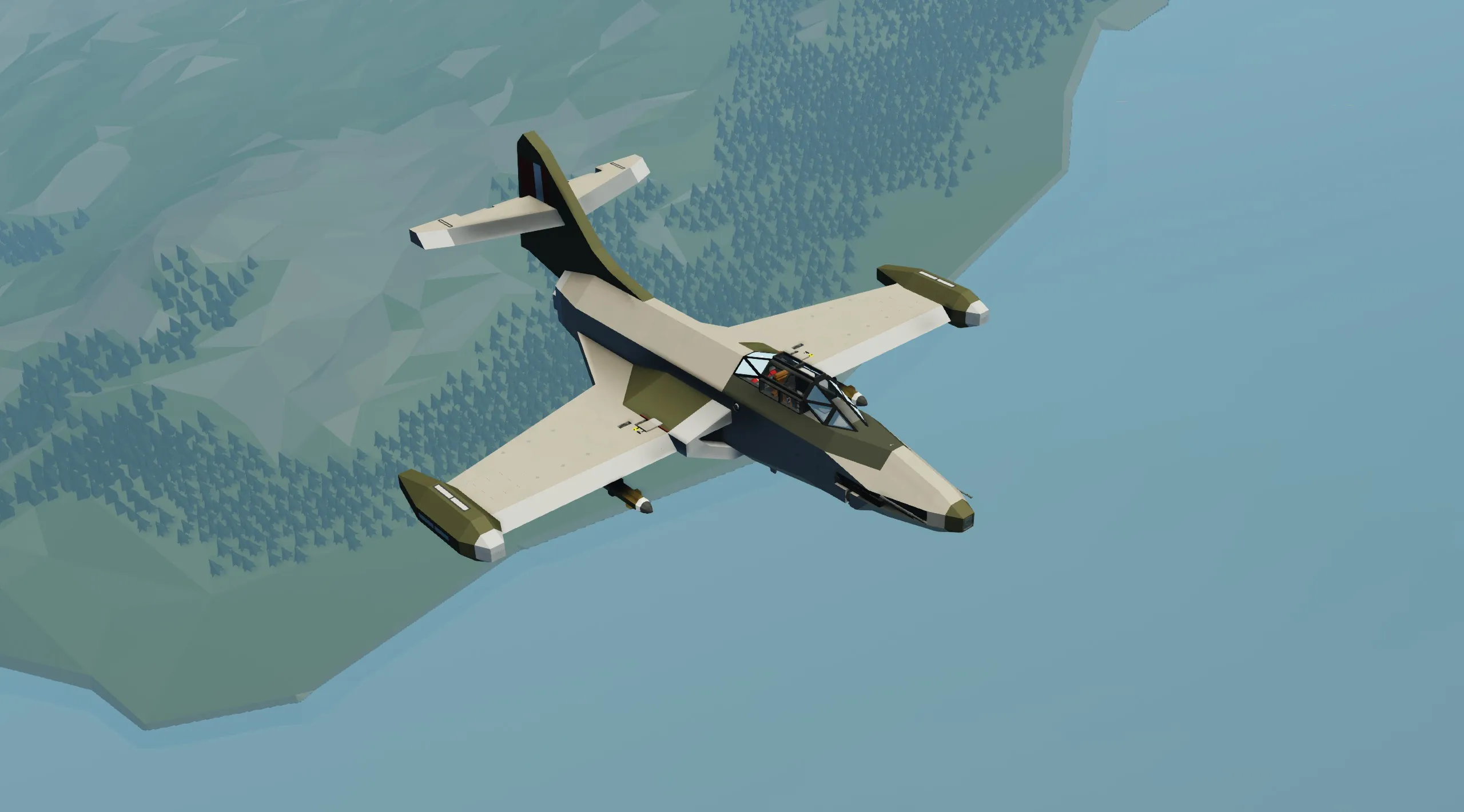 This F9F in Stormworks was designed to be a semi-faithful replica to the original plane. In game, the F9F performs decently well in both air-to-air and air-to-ground roles. Equipped with 2X stretched machineguns for extra damage and armor penetration as well as unguided HVAR rockets, you will have no trouble taking out planes, tanks, helicopters, and small patrol boats with this aircraft. I have flown it extensively on various combat servers and it really is a joy to use.