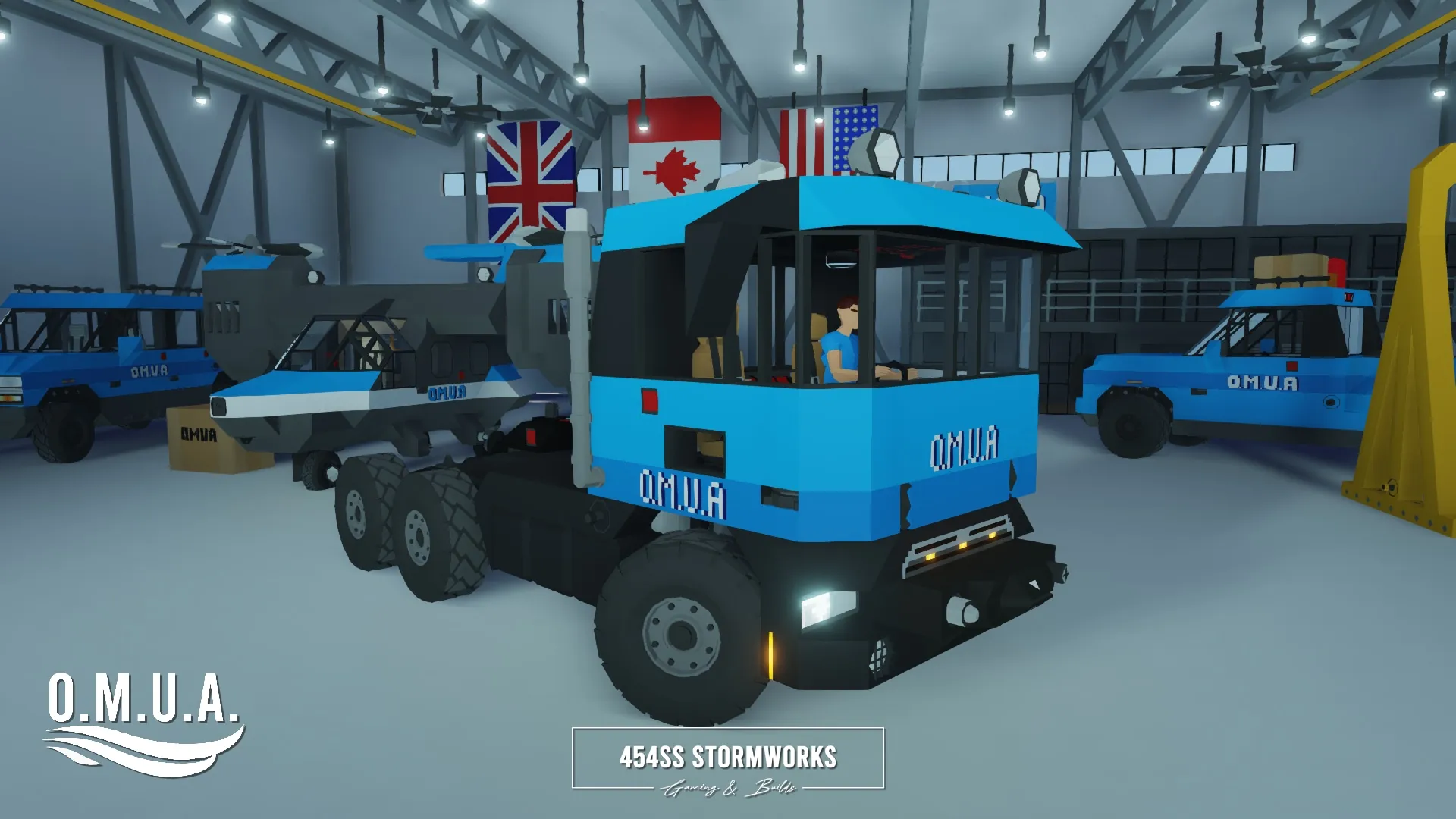 The Buckel Convoy is a Class 7 commercial-grade truck, produced since 2006 for the European market. It features a supercharged 10 cylinder engine, 1000 L fuel tank, towing-geared transmission and hexasteer rear axle is capable of towing up to 27,000 lbs. It features trailer-boost technology (if equipped on the trailer) that will allow extra-heavy towing for short periods of time. This particular plane is owned by OMUA (Oceanic Marine Underwater Agency), a (fictional) multinational marine and research agency, and is Q1TACH attachment compatible.
