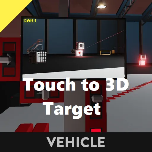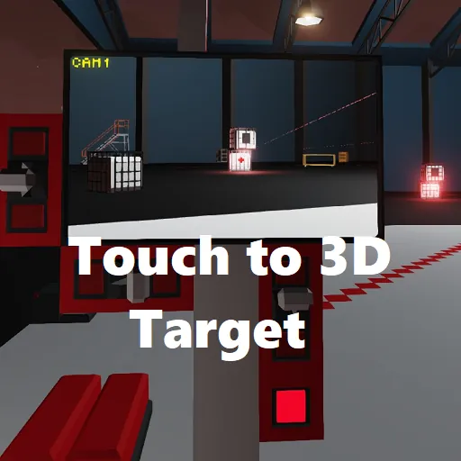 Locates the 3D coordinates of a target touch on a camera monitor using a distance laser. Accounts for the camera's pivot and zoom.