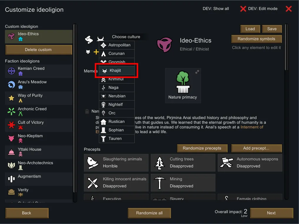 Due to predefined backer pawns, you might still see names like "Trevor Cobb". There's nothing I can personally do, as I have no coding experience to patch those names out from pawn generation when the Khajiit culture is used. However, there's about 100000 possible name combinations with this mod, so there'll be plenty of names for the game to take from. Using [url=https://steamcommunity.com/sharedfiles/filedetails/?id=3548290568]Pawn Name Variety[/url] will eliminate all of these predefined back pawns, and will leave your Khajiit culture with no Trevor Cobbs (No Trevor Cobbs harmed in this process)!