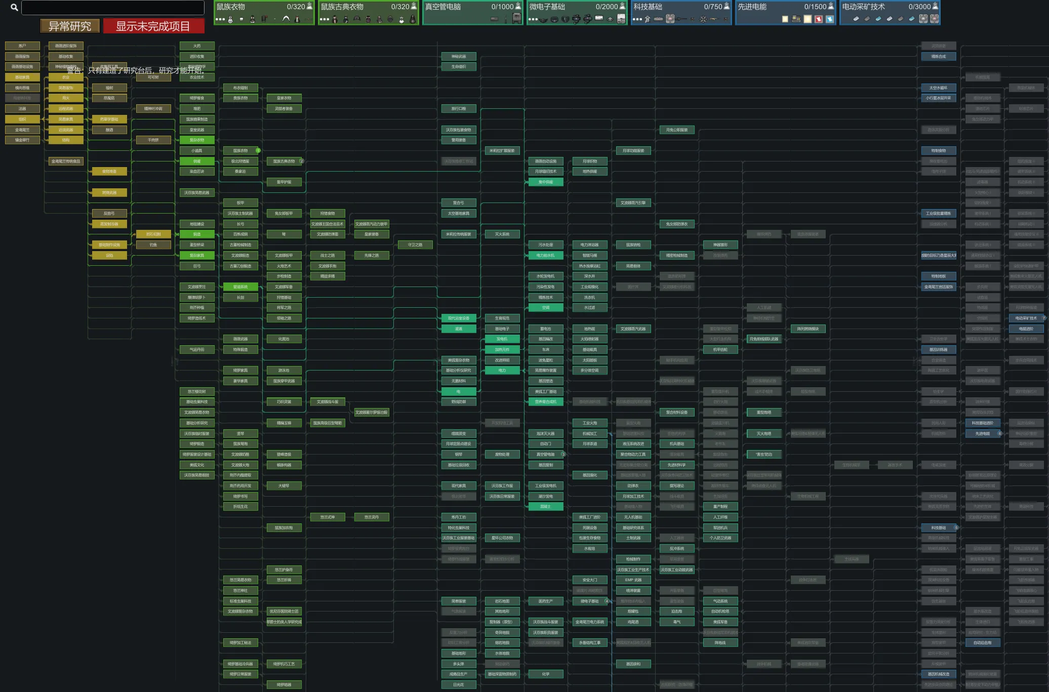 1. Added the ability to select research tabs. You can now set it to only display research items within specific tabs. Closing tabs you have completed or aren't currently focused on will make your research tree interface much cleaner.