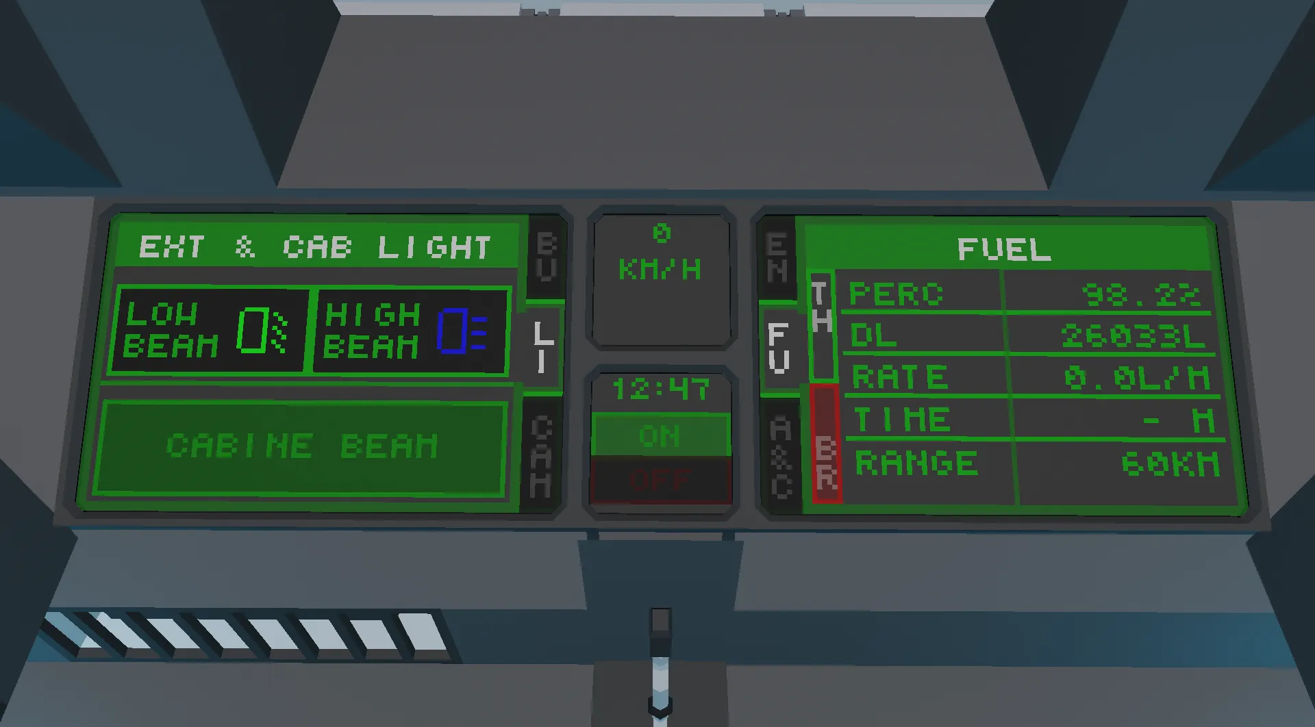 - When the low/high front/reverse headlights are turned on, the lights switch to the opposite cab for convenient night control via the camera.