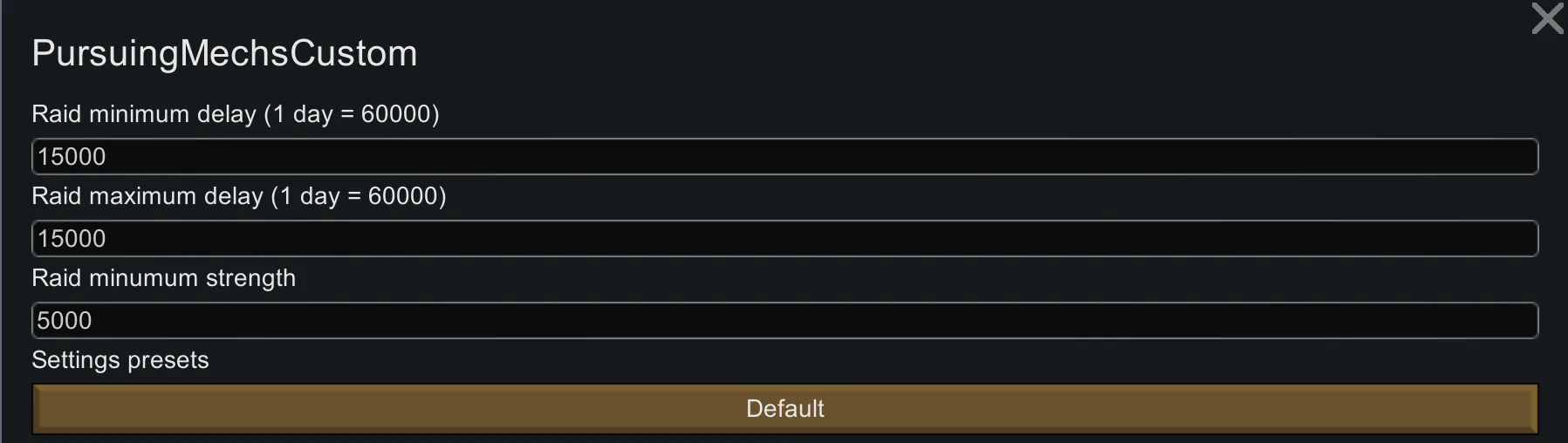 This mod allows configuration of time rannge and strength of 'Incoming mechanoids' with custom, modified scenario.