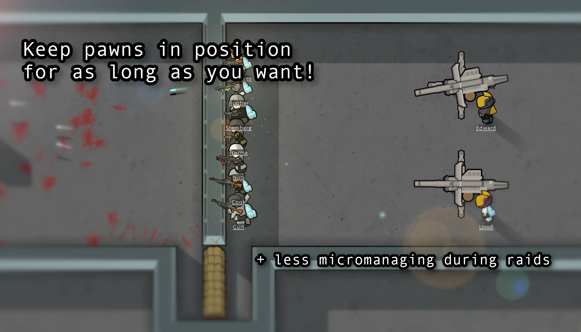 I wanted to address a common [i](or maybe it's just mine)[/i] frustration in colonies - managing pawns' needs during raids.