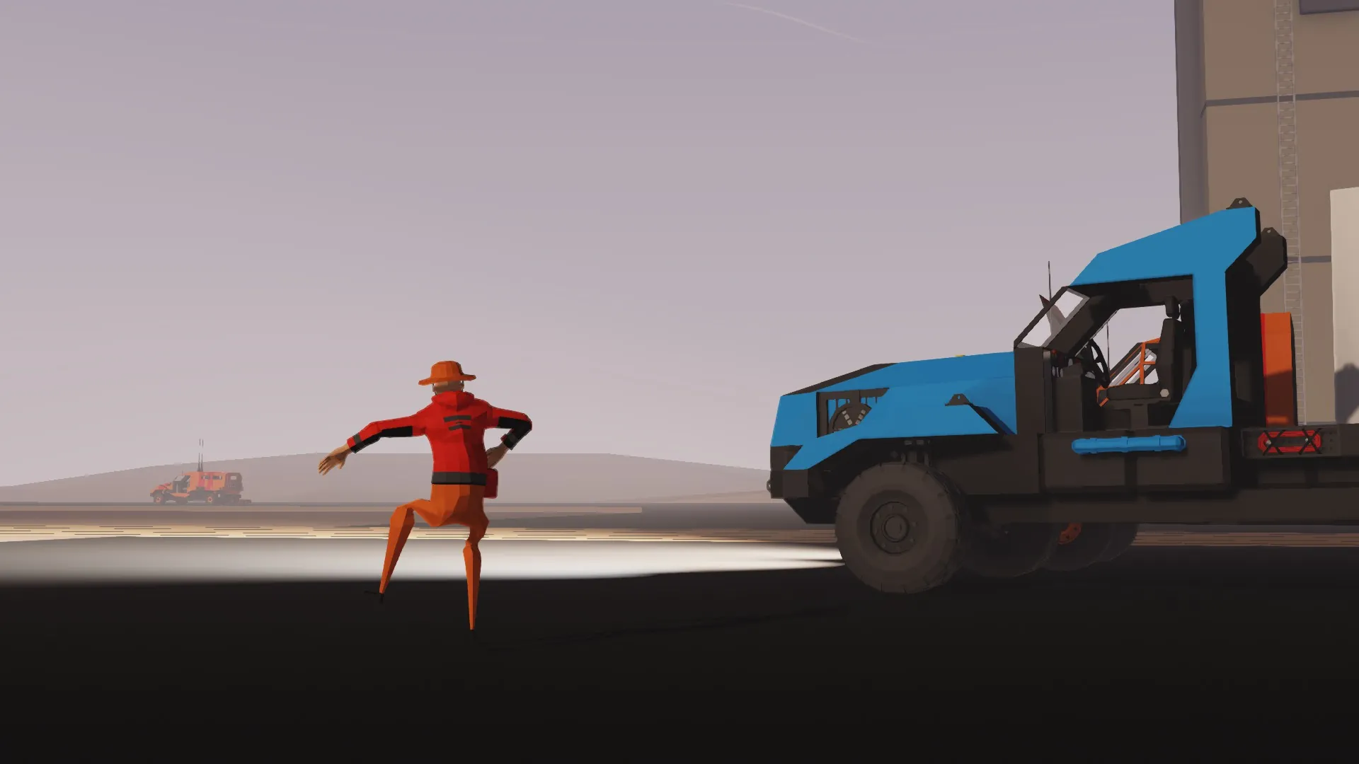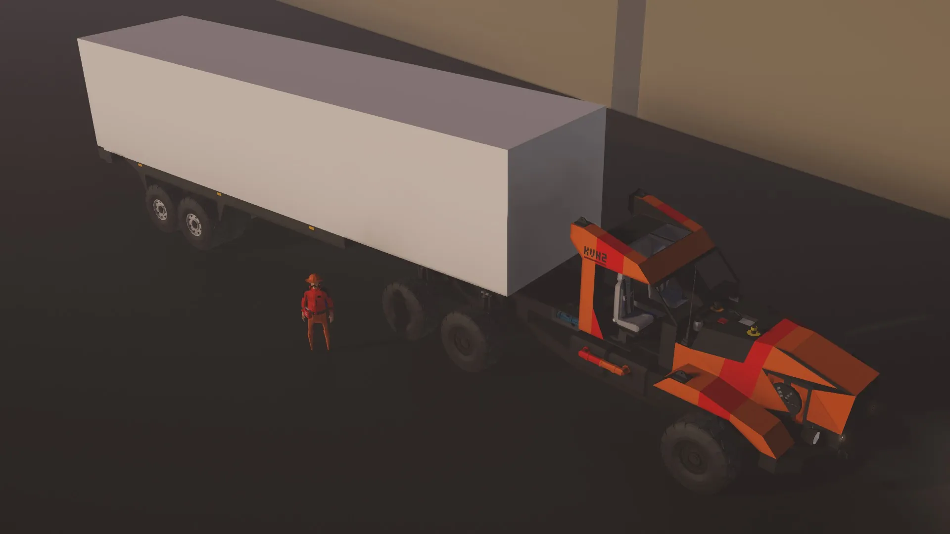 This truck is kinda crudely put together as was my first real entry into heavier engines, thus control is a little jank. The technologies associated with my gen2 KLV series (like KLV3 and KLV21) are not applied to the KVH 2 so steering is limited and slow to account for longer durations at higher speeds, as well as there is a lack of governor on the engine meaning the vehicle accelerates extremely rapidly while unloaded.