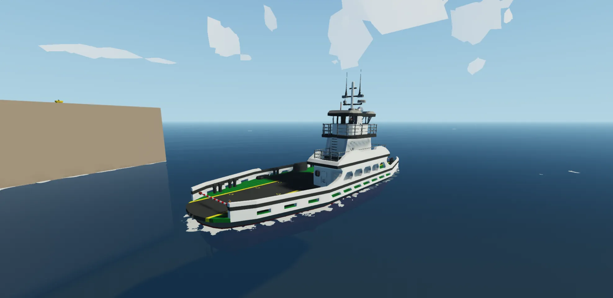 Mv Greenleaf is a small equipment ferry. Can carry passengers, small vehicles and equipment, Ship has basic controls along with an auto stabilization.