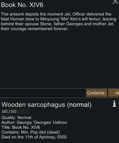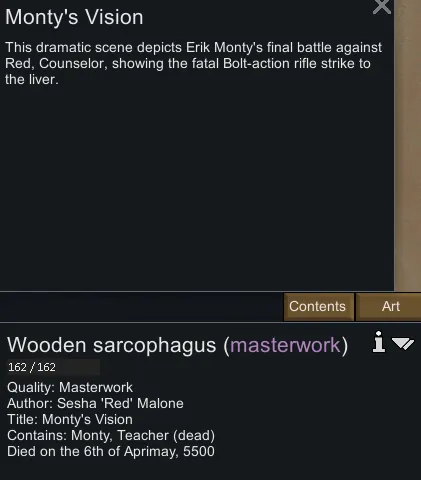 Makes sarcophagus art reflect how the buried pawn died, and remaining direct family members.