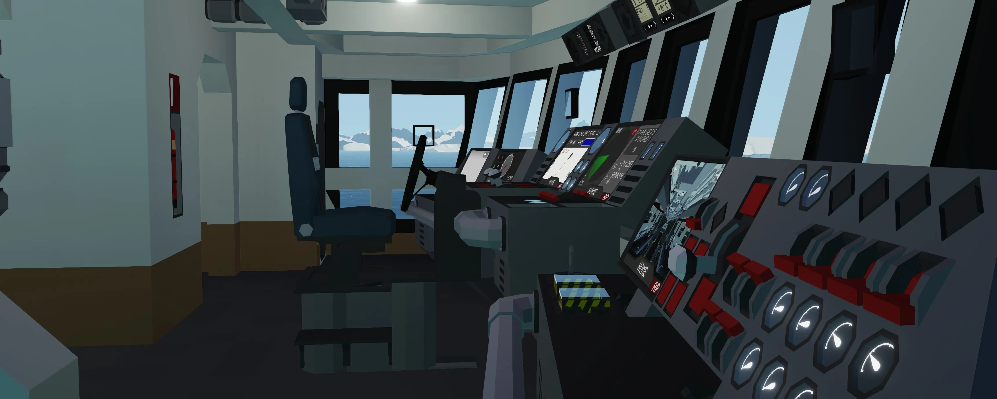 Starting up the Atlantis is super easy. First make sure that the main power breaker is switched on. Next, head to the control panel on the starboard side of the bridge and switch on the fuel pumps, air pumps, coolant pumps, and exhaust valves. After that, switch the engines on. the engine switches are found just to the right of the pump switches. Once the engines are running go and turn the monitors/back lights on and your good to go!